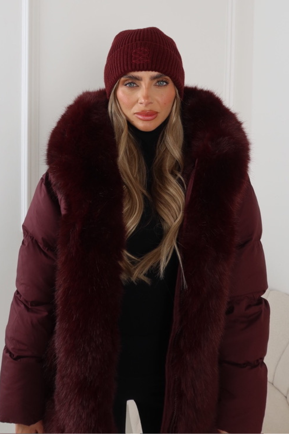 GLAMIFY EMBROIDERED BURGUNDY BEANIE