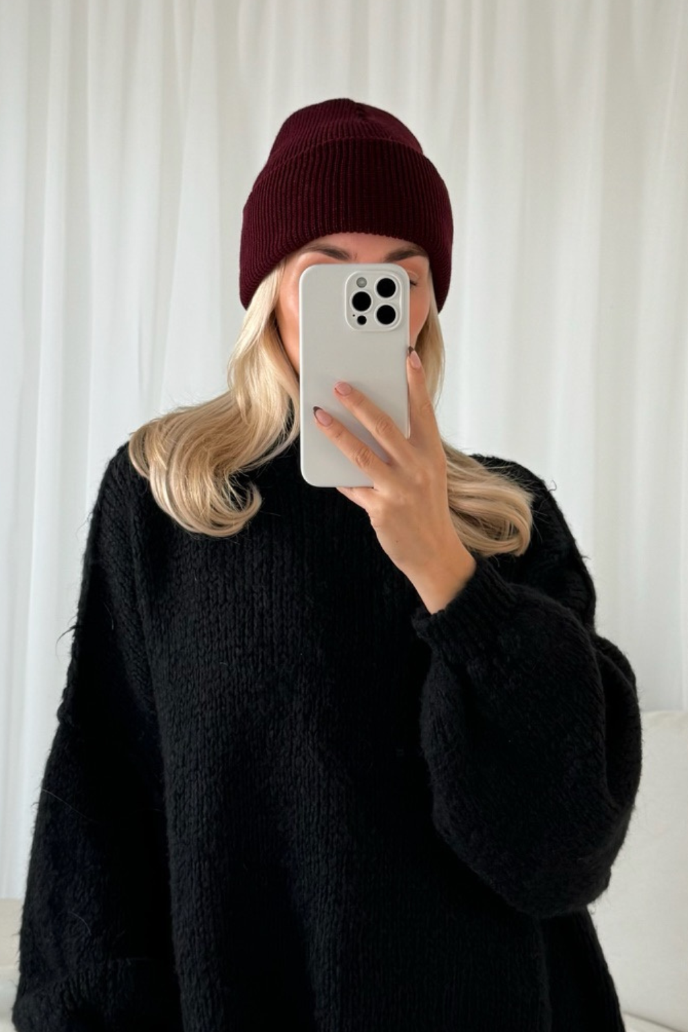 Stay cosy and stylish with the Konnie knit beanie hat. Made with a cosy knit, this beanie is perfect for chilly days. Keep your head warm and your outfit on point with this must-have accessory.