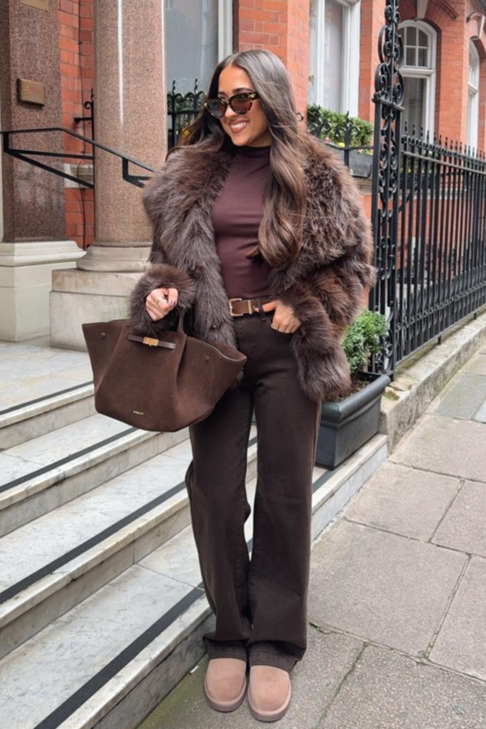 This Olivia faux fur coat is an excellent choice for chilly autumn days. Keep warm and look chic with this stylish, flattering jacket. The fur exterior is super soft and adds cozy comfort to any outfit. Perfect for fashionable outdoor looks this season.