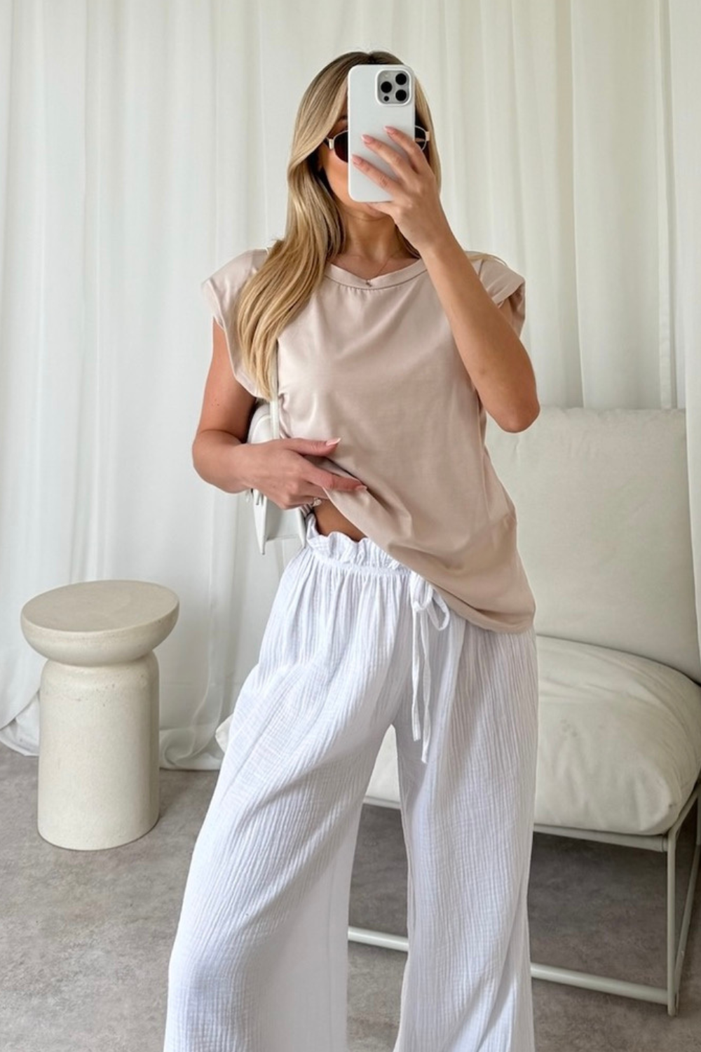 Revamp your summer wardrobe with our Eliza shoulder pad box t-shirt. The perfect elevated basic for a casual outfit, the shoulder pads provide a stunning silhouette. A must-have summer essential for a stylish but effortless look.