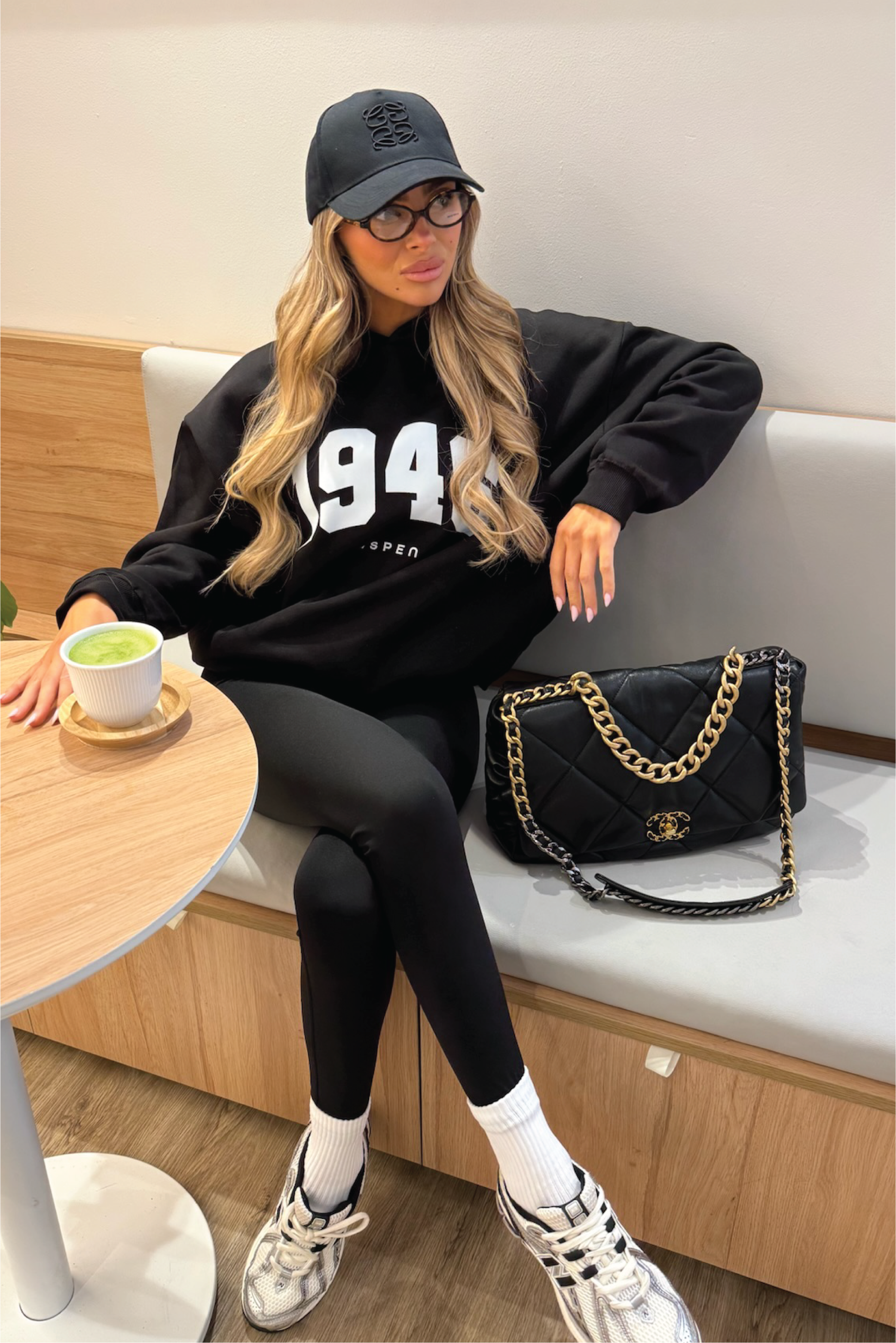 1946 ESSENTIAL BLACK PRINTED HOODIE