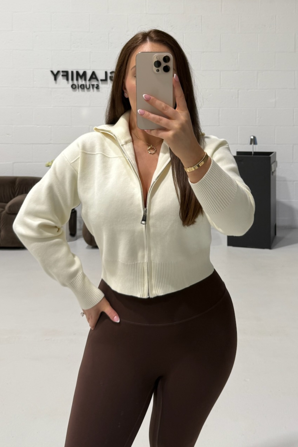 MANDY CREAM FULL ZIP RIBBED HIGH NECK CARDIGAN