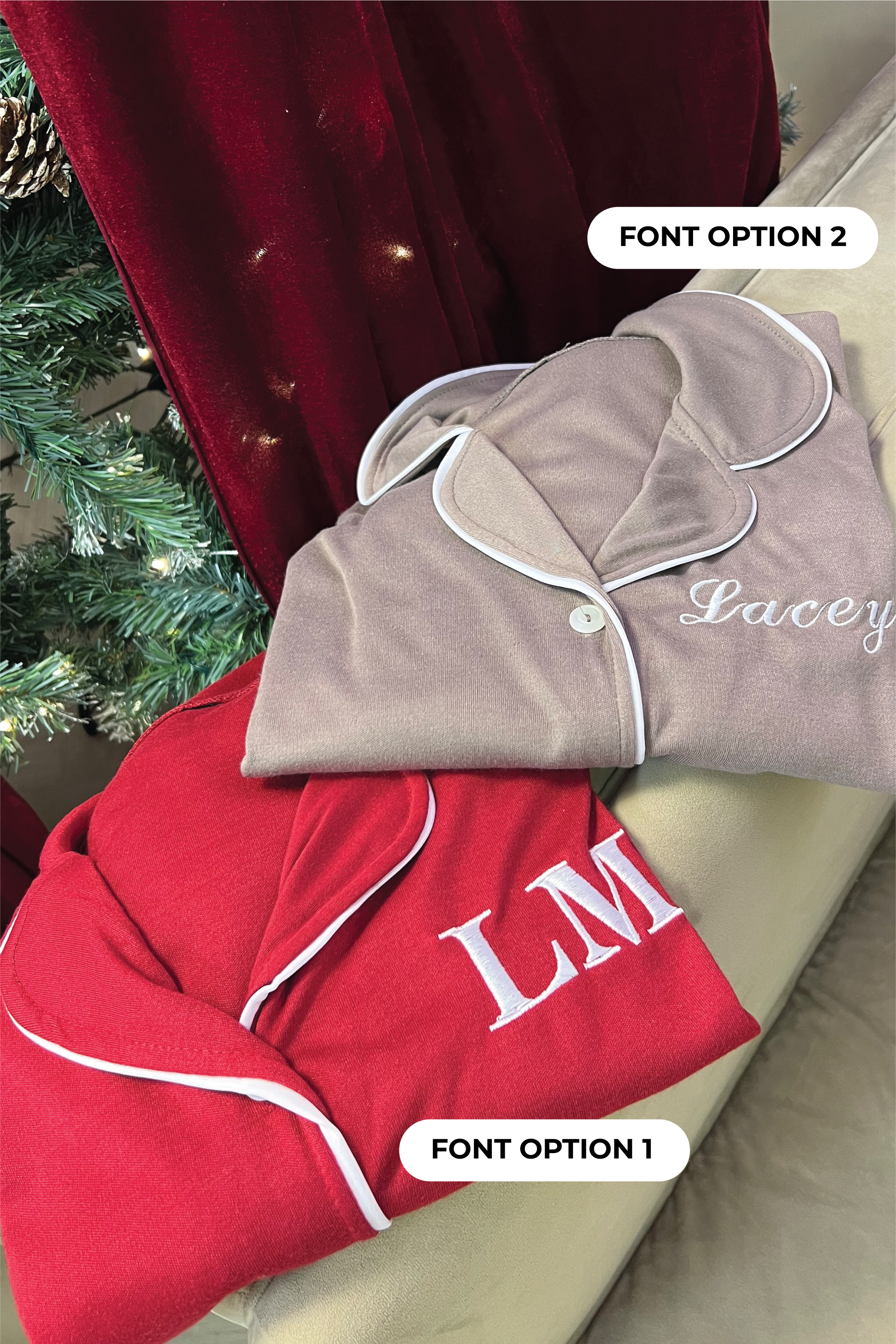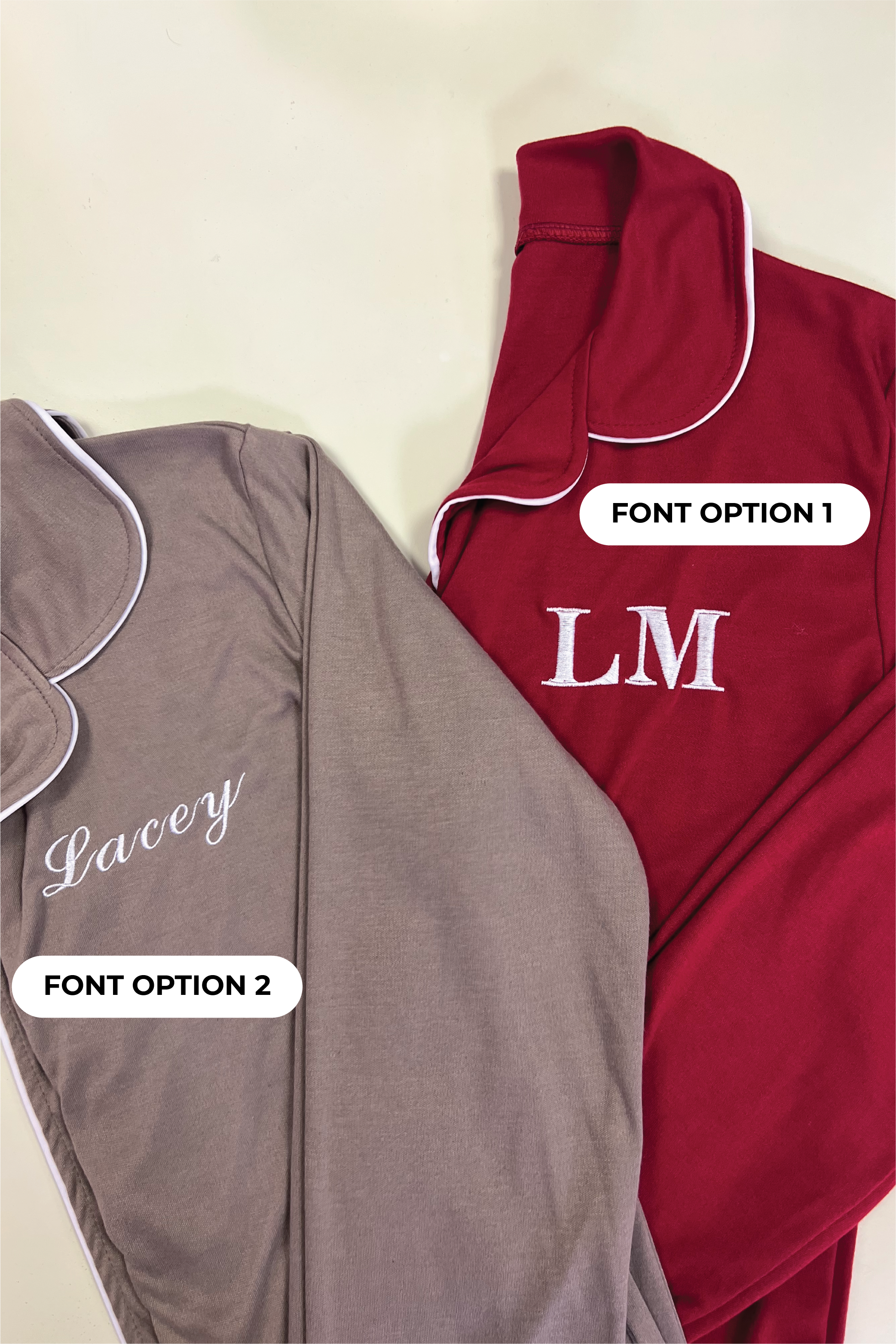 PERSONALISED EMBROIDERED PREMIUM JERSEY TAUPE CLASSIC PIPING PYJAMA SET