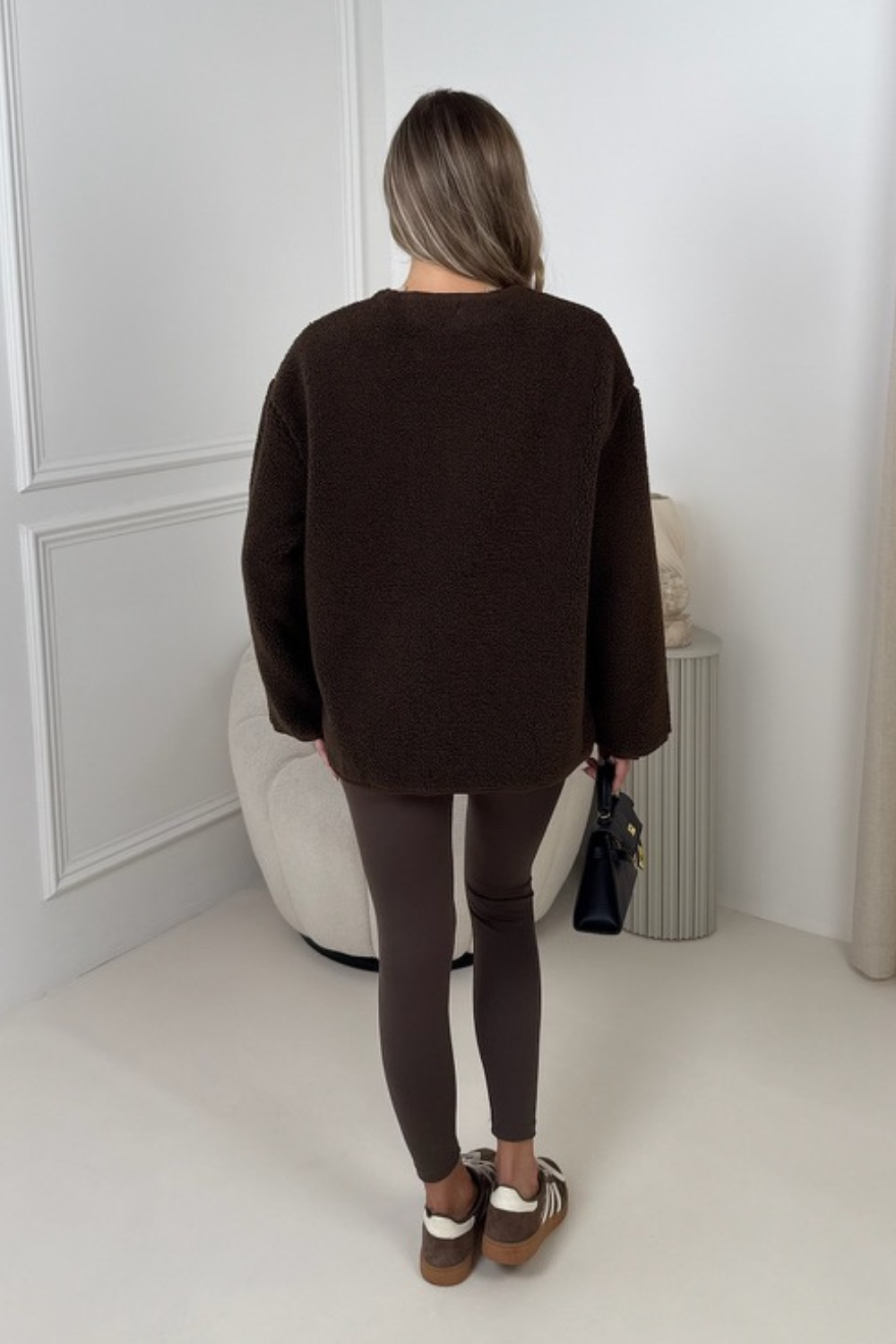 Snuggly, soft, and seriously cute this teddy-style jacket is your new layering fave. With its plush feel and cozy fit, it adds the perfect touch of warmth and charm to any outfit. Throw it on and feel instantly cute & comfy.
