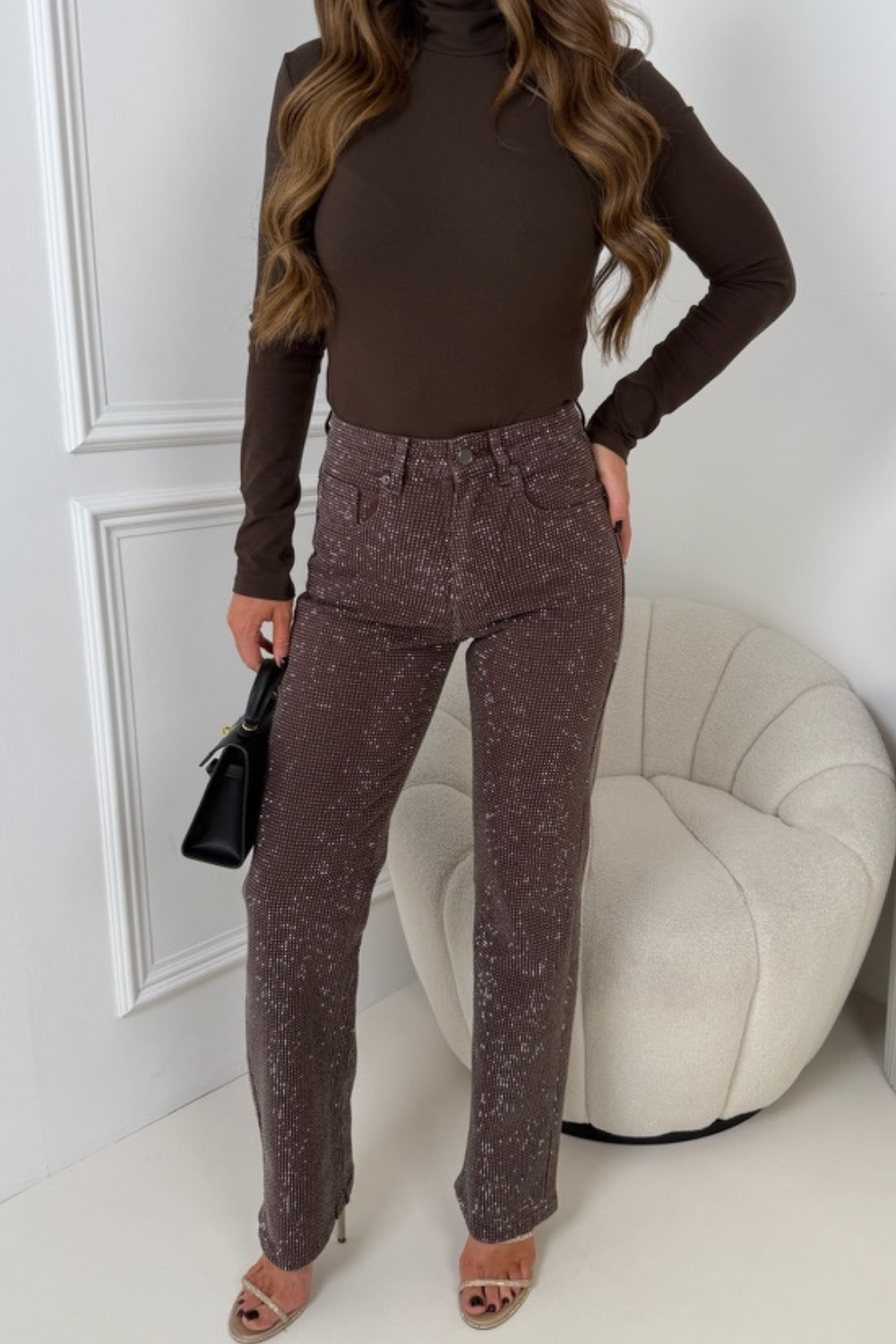 CASSI CHOCOLATE DIAMANTE STRAIGHT LEG JEANS