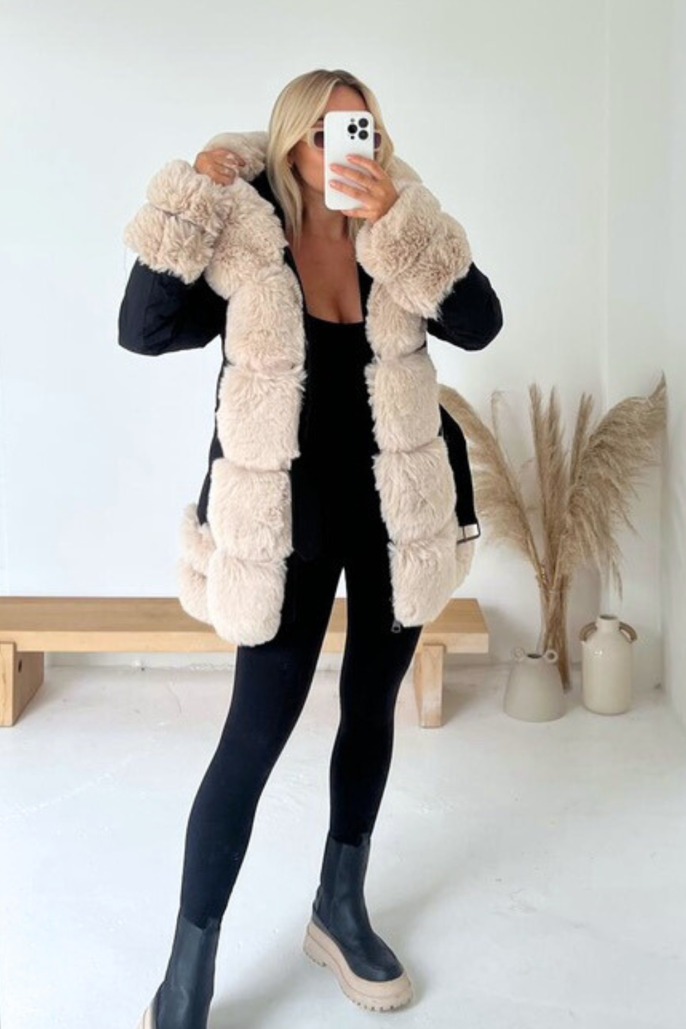 Orla black & cream faux fur hooded coat