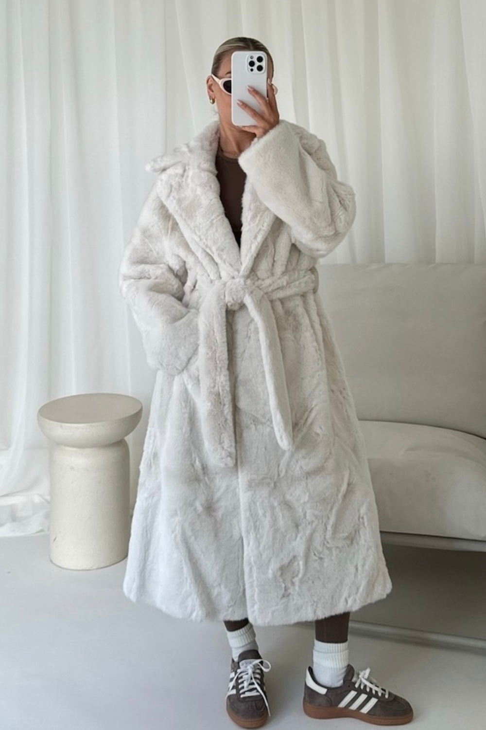 Stay warm and stylish in the Zhuri fur coat. This gorgeous coat is made from soft faux fur for a chic, luxurious look. It features full panels of fur ,collar and belt , so you can stay all winter long.