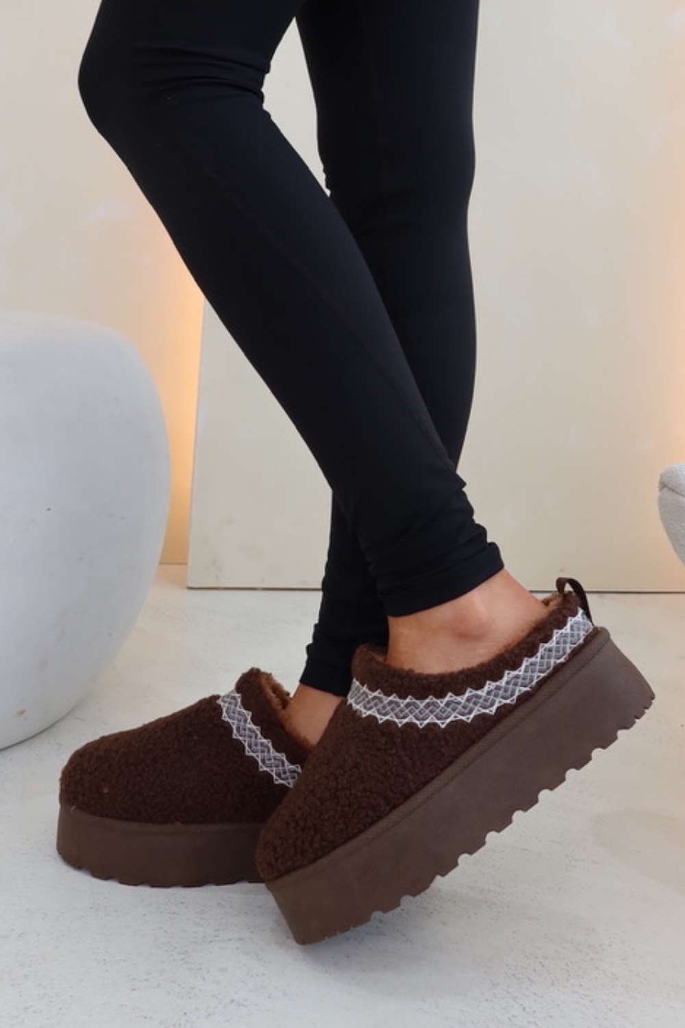 Looking for a stylish and comfortable addition to your daily outfits? Look no further than our Alba chocolate brown platform mules. These slip-on shoes feature a soft faux fur lining, making them the perfect day-to-day essential. With their platform design, slipper style, and easy pairing with tracksuits, these mules are a must-have for any fashion-forward individual.