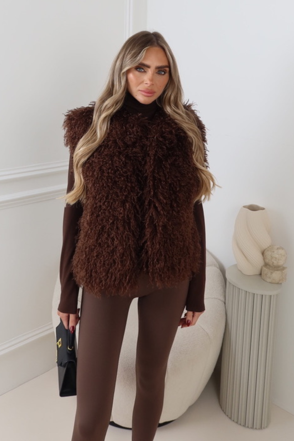 DULCIE CHOCOLATE MONGOLIAN FAUX FUR GILET