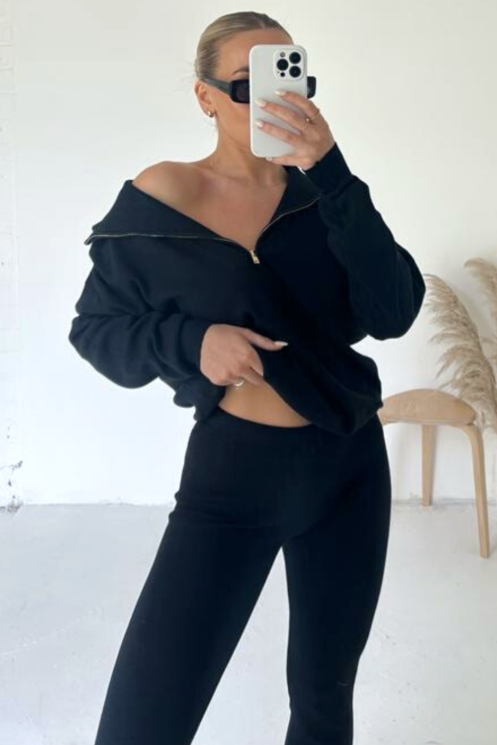 Be warm but stylish in these Brandy knitted leggings co-ord. The ribbed knitted leggings and zip up jumper combo are perfect for transitioning into autumn and can easily be paired with boots, trainers and a coat. Enjoy yourself in comfort and style.