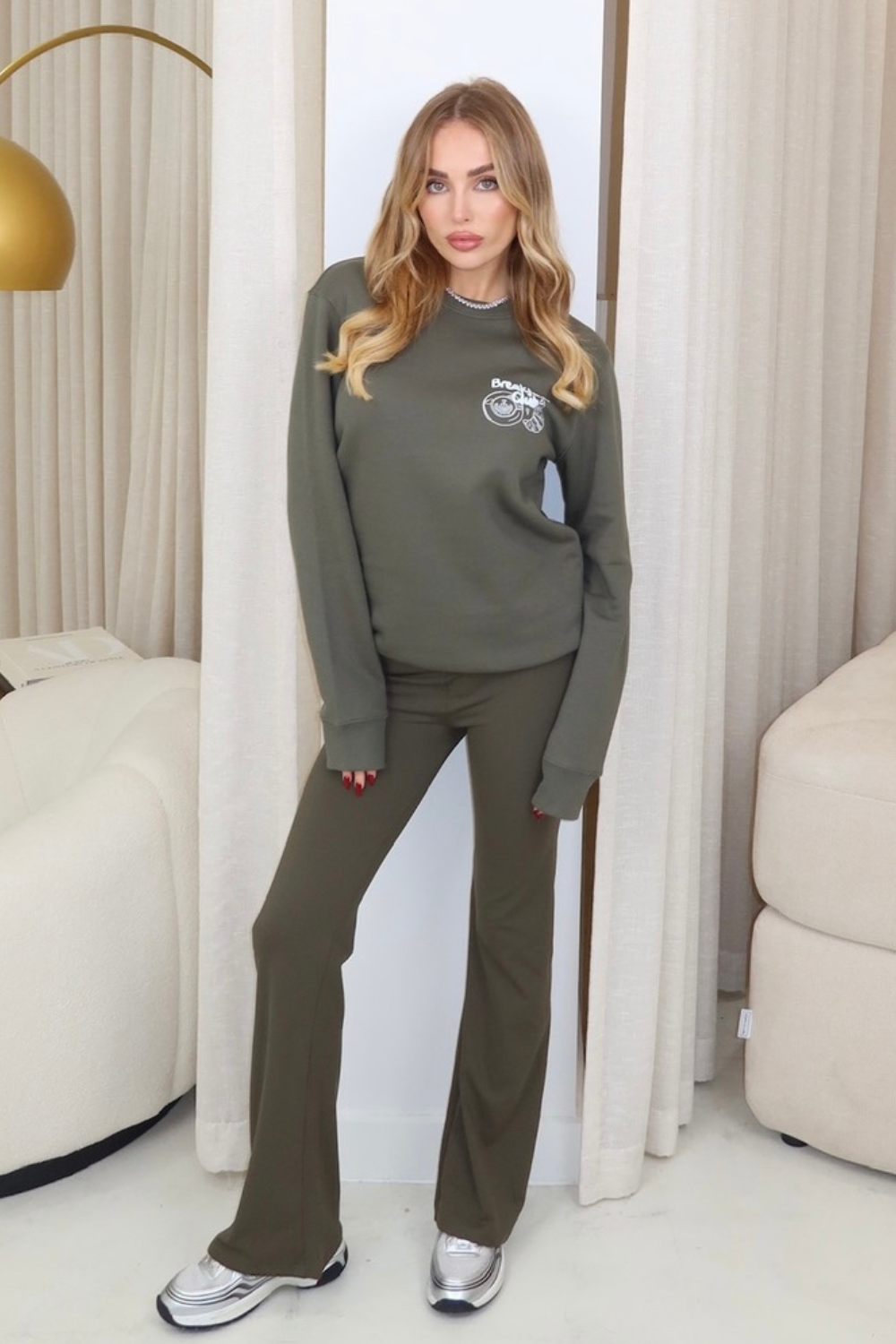 - Paired with our Sophie khaki flares for the ultimate cool girl look!