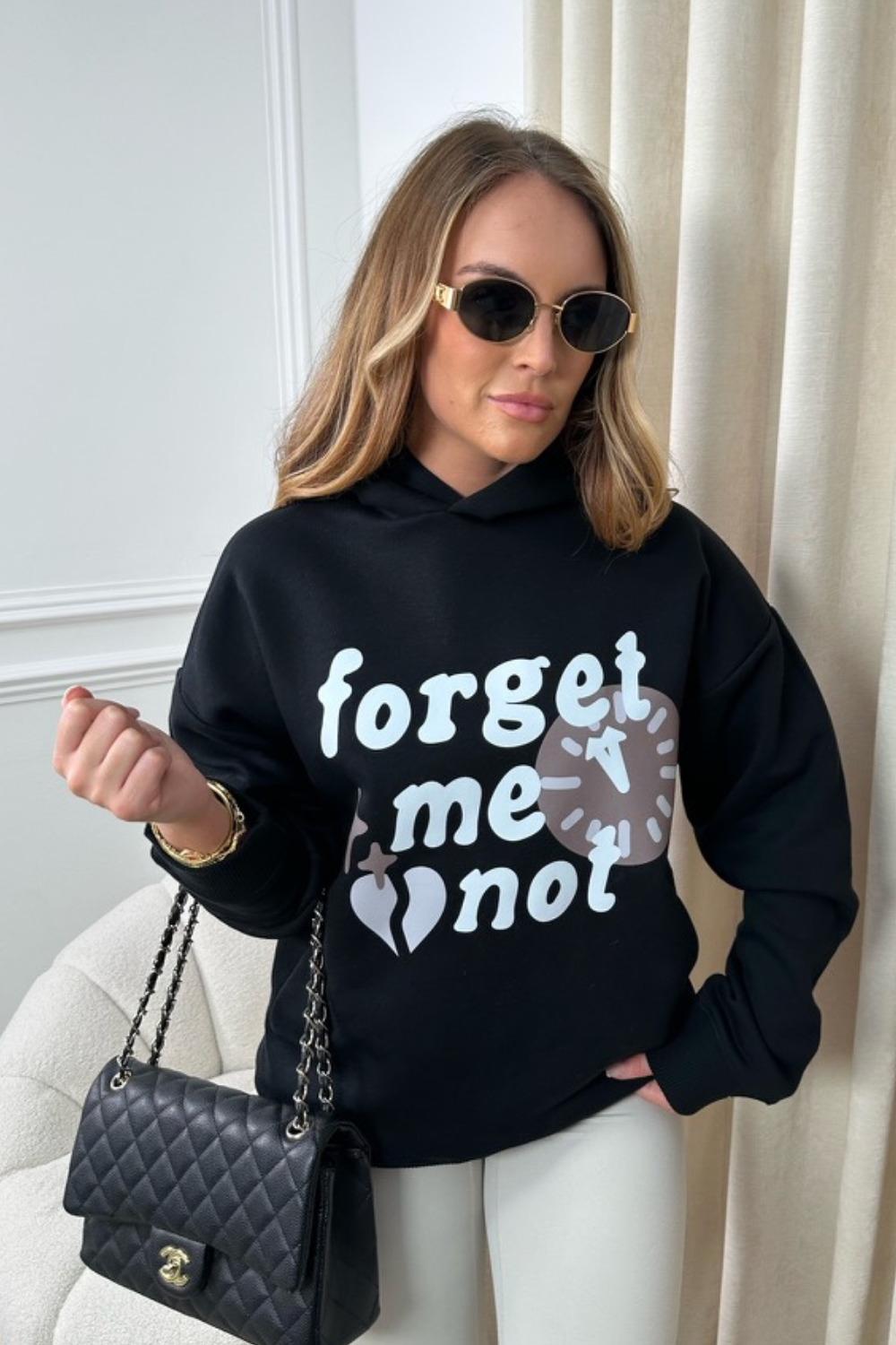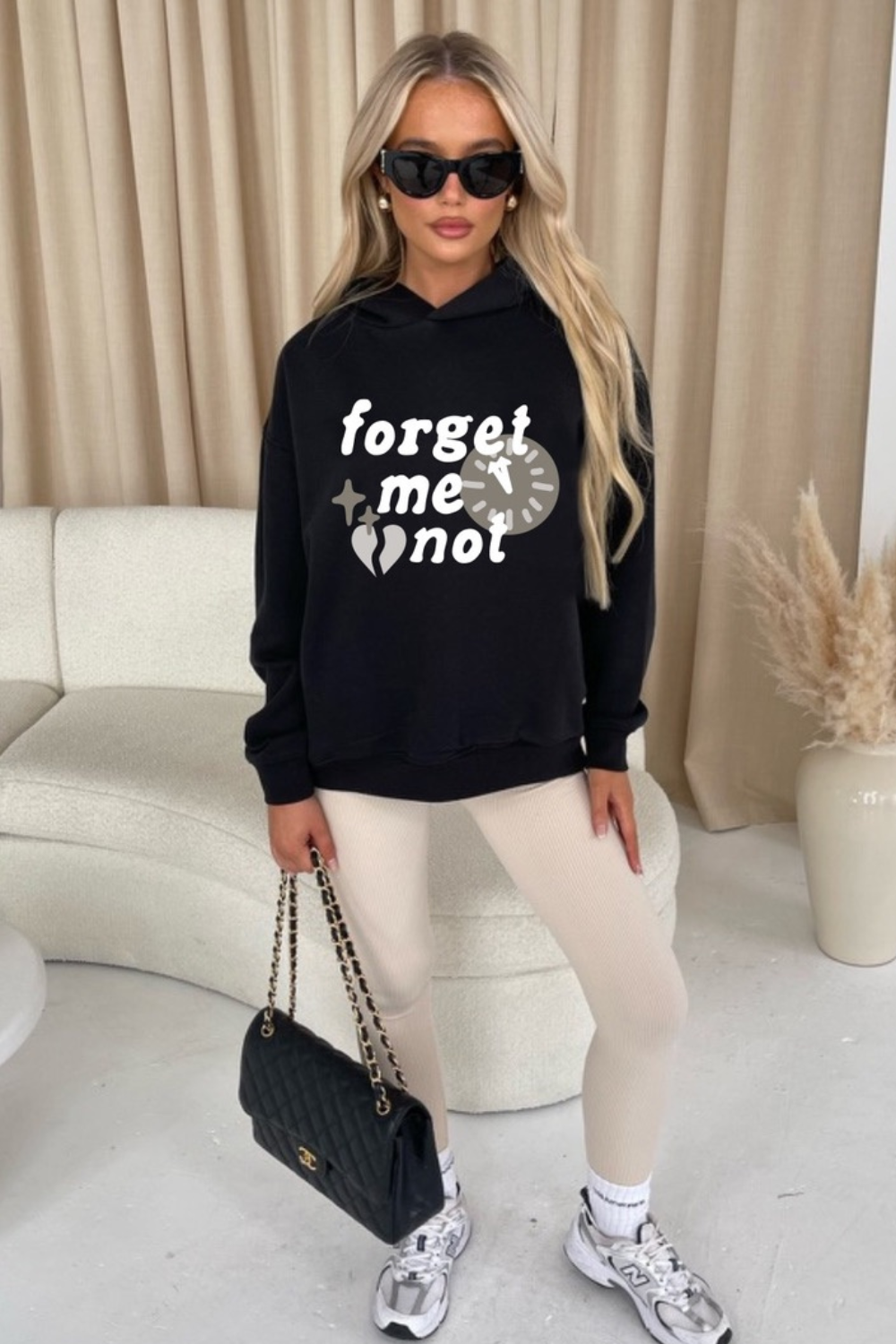 Featuring a soft-touch material hoodie with dropped shoulders, concealed pockets and our in house 'Forget me not' print  pair this with a pair of fresh chunky trainers for a complete look.