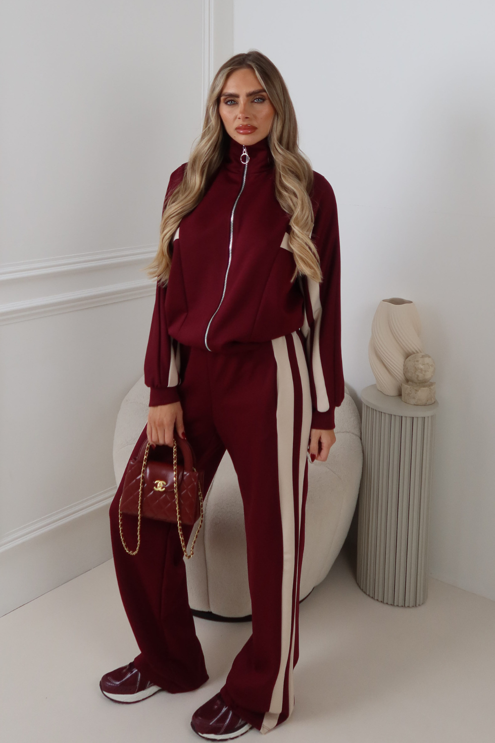 FRANKIE BURGUNDY DOUBLE STRIPED TROUSER LOUNGEWEAR SET