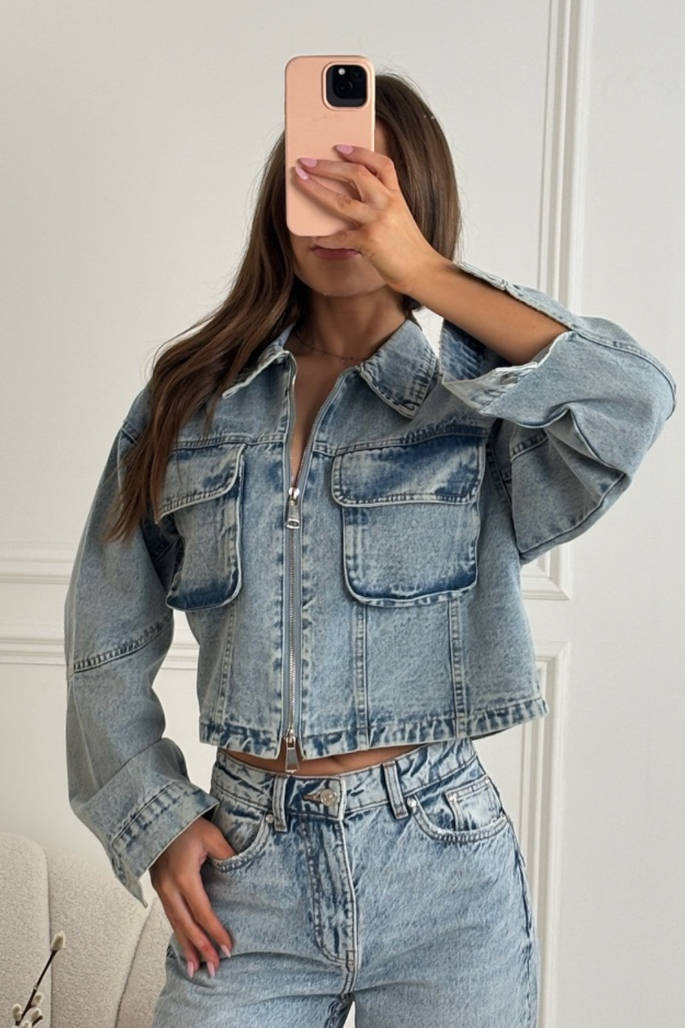 Zip up in style with our Libby denim jacket. This versatile piece is perfect for any occasion, with its long sleeves and pocket detailing. Dress it up or down for a look that's uniquely you. Plus, it's made from quality denim for maximum comfort. Denim never looked so good!