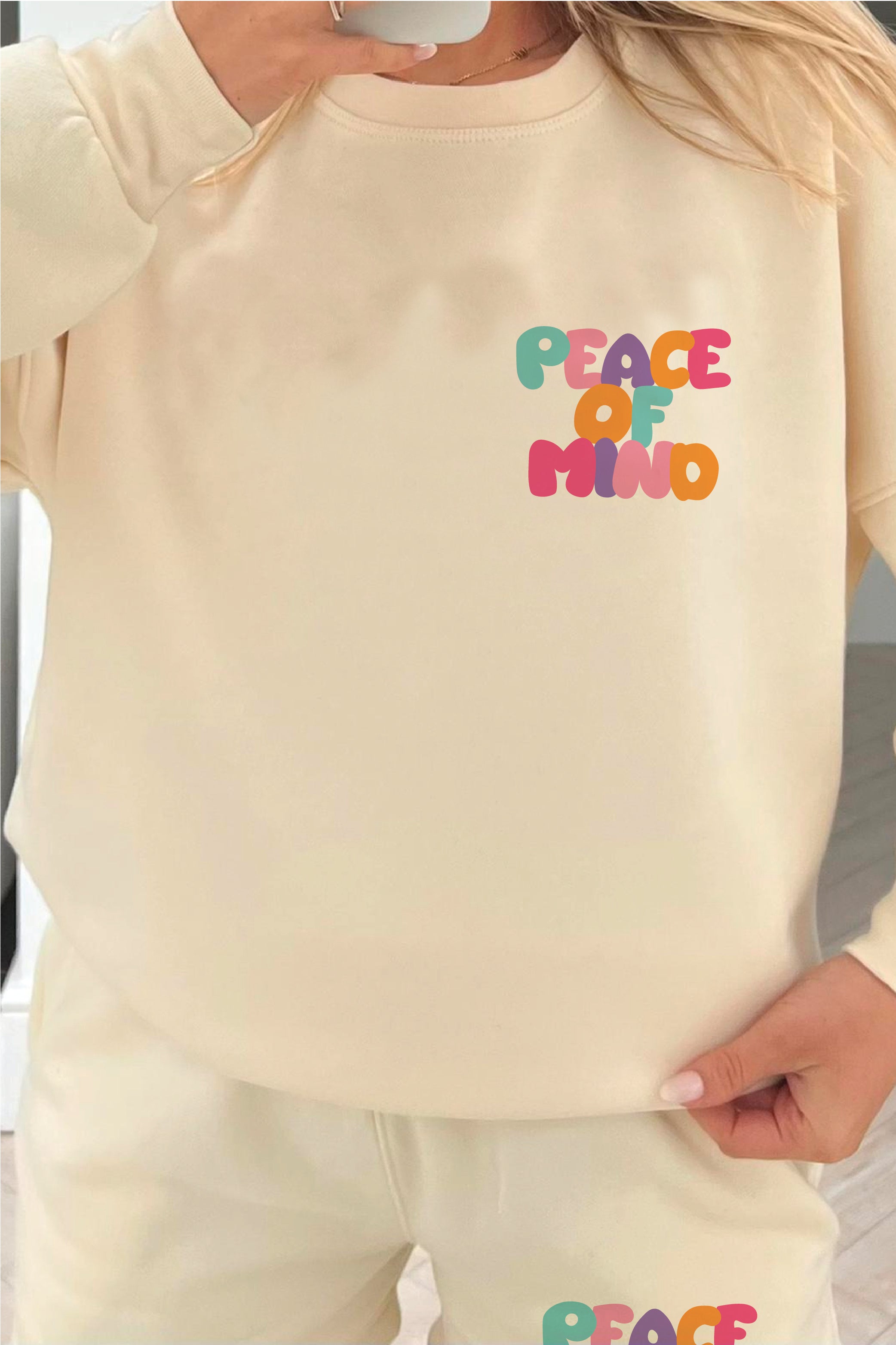 Featuring a soft-touch ecru material sweater with our peace of mind , matching elasticated drawstring shorts that are also printed, both the sweater and shorts are made from the same material, pair this with a pair of fresh chunky trainers for a complete look.