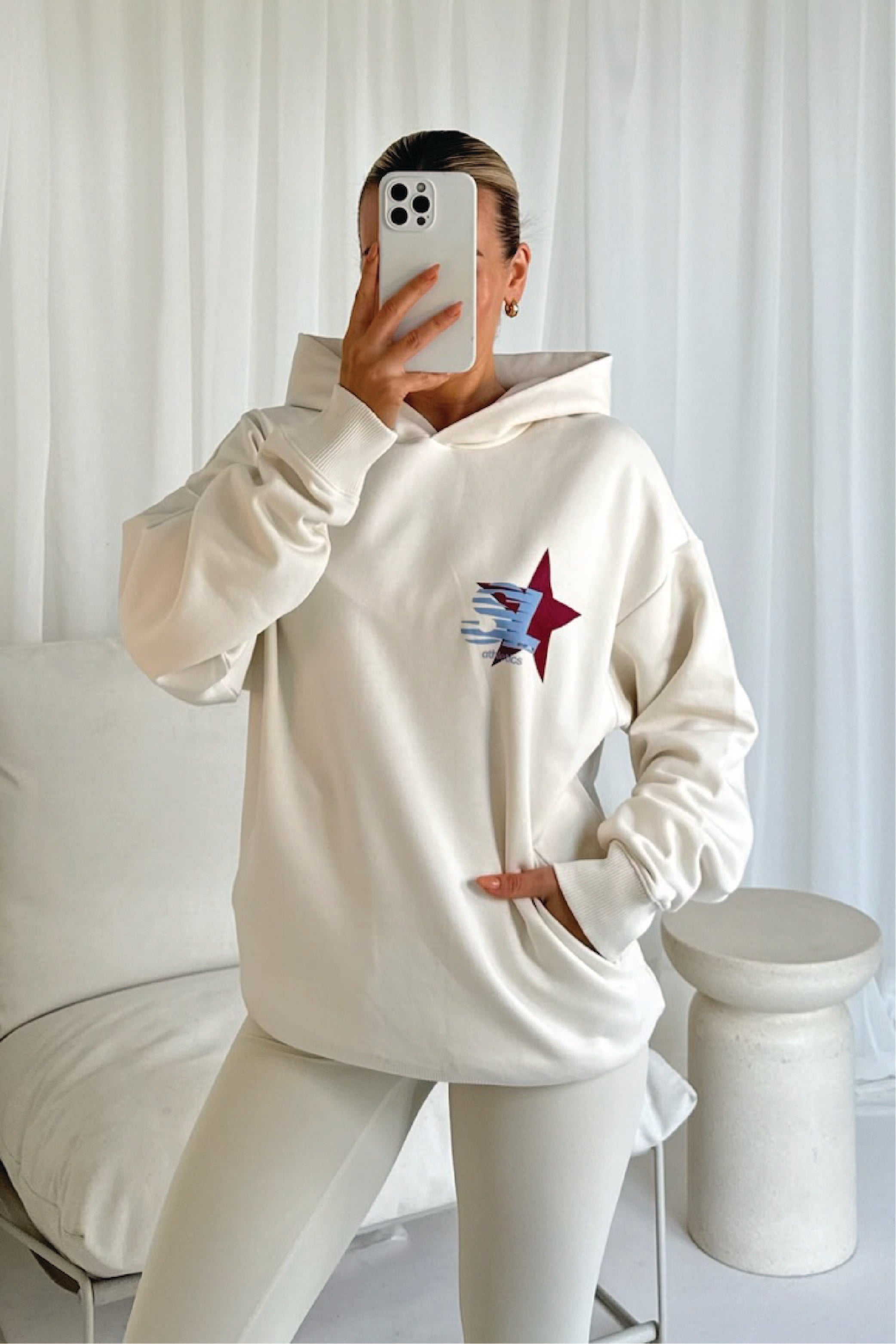 Stand out in style with our Studio leisure star white printed hoodie. Featuring dropped shoulders and a great fit, this sweater is perfect for pairing with jeans and trainers. Stay comfortable and trendy all day long.