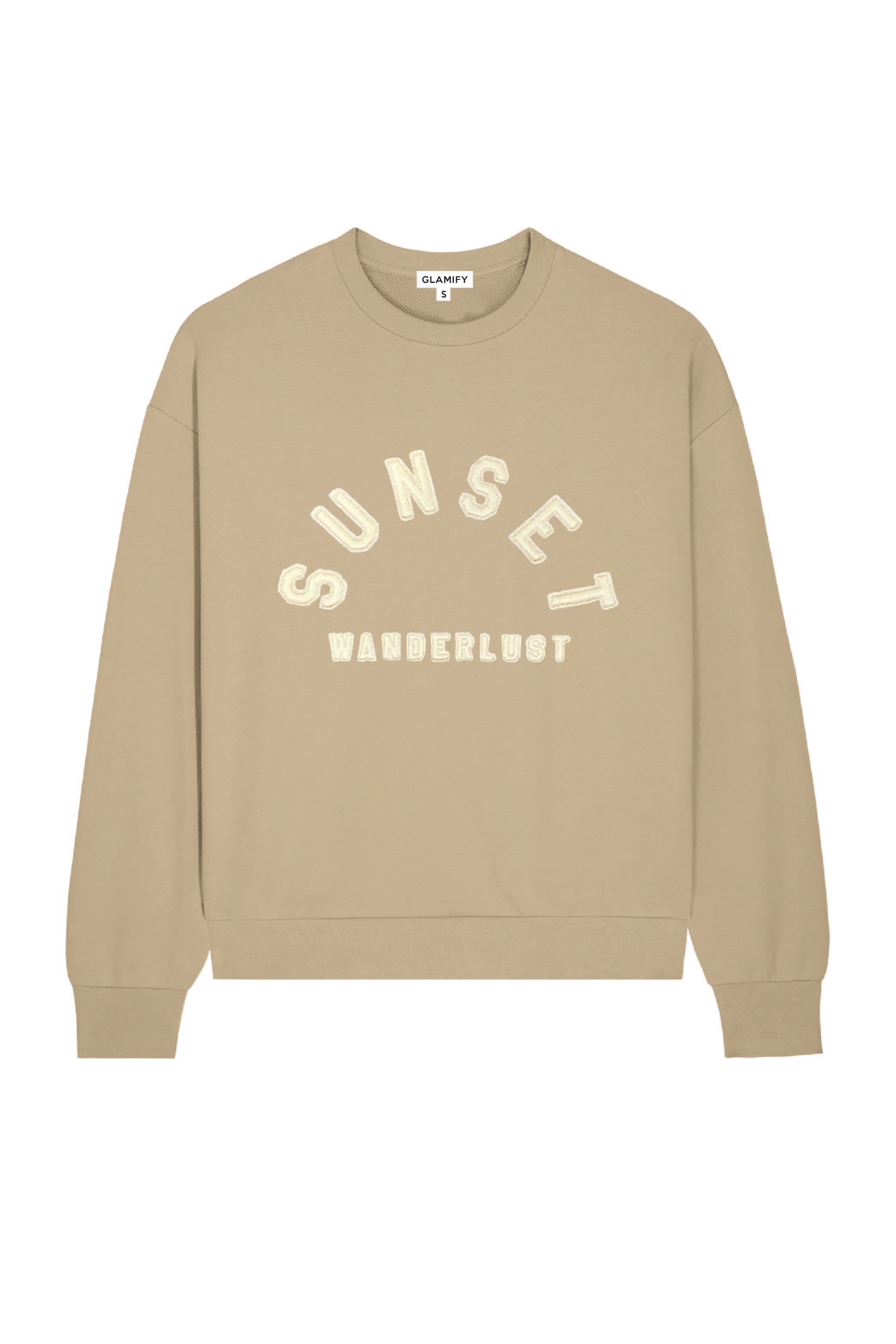 Featuring a soft-touch ecru material sweater with our the 'sunset wanderlust' printed design. This sweater is the perfect airport look just pair with some leggings or cycling shorts with sliders and your good to go.