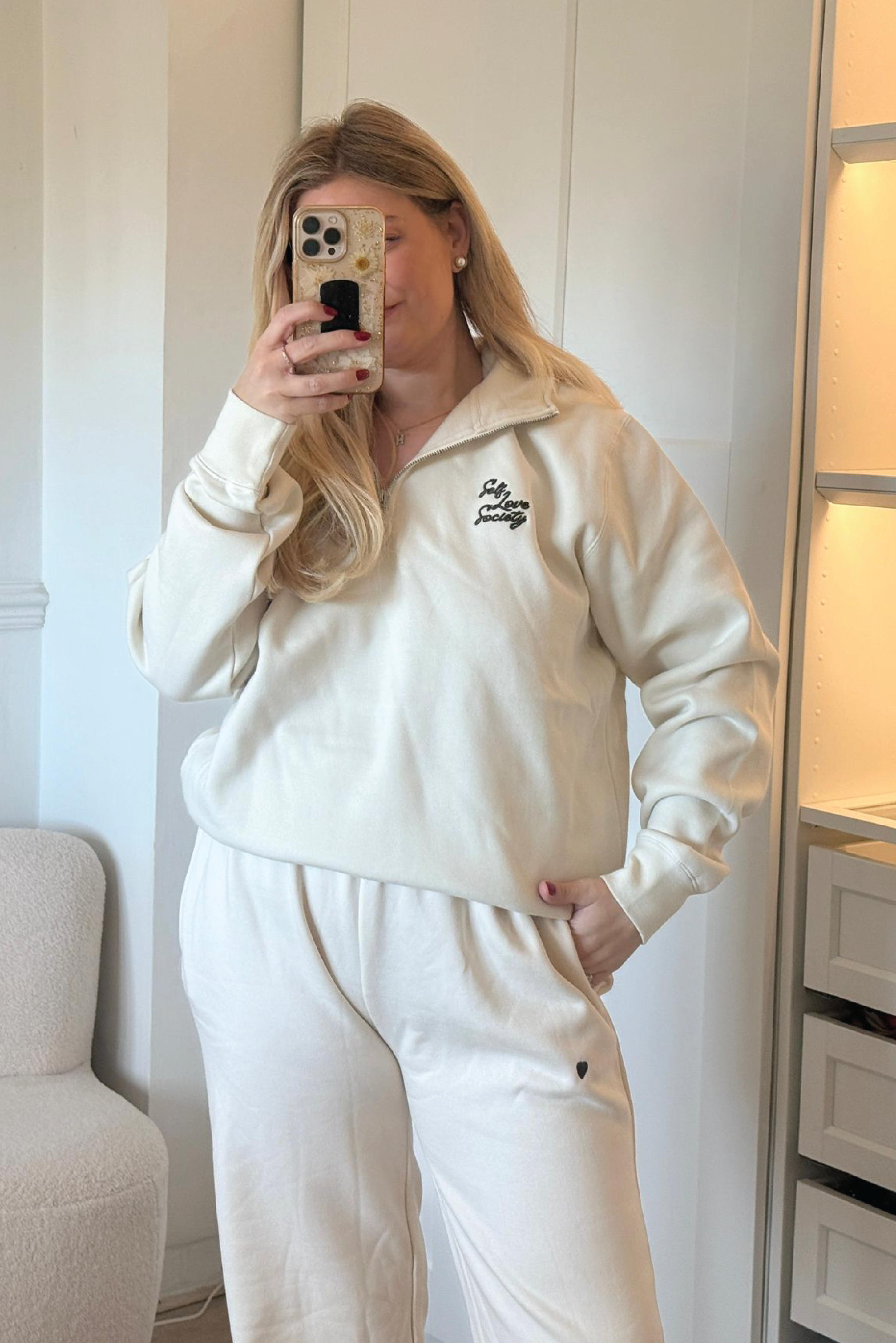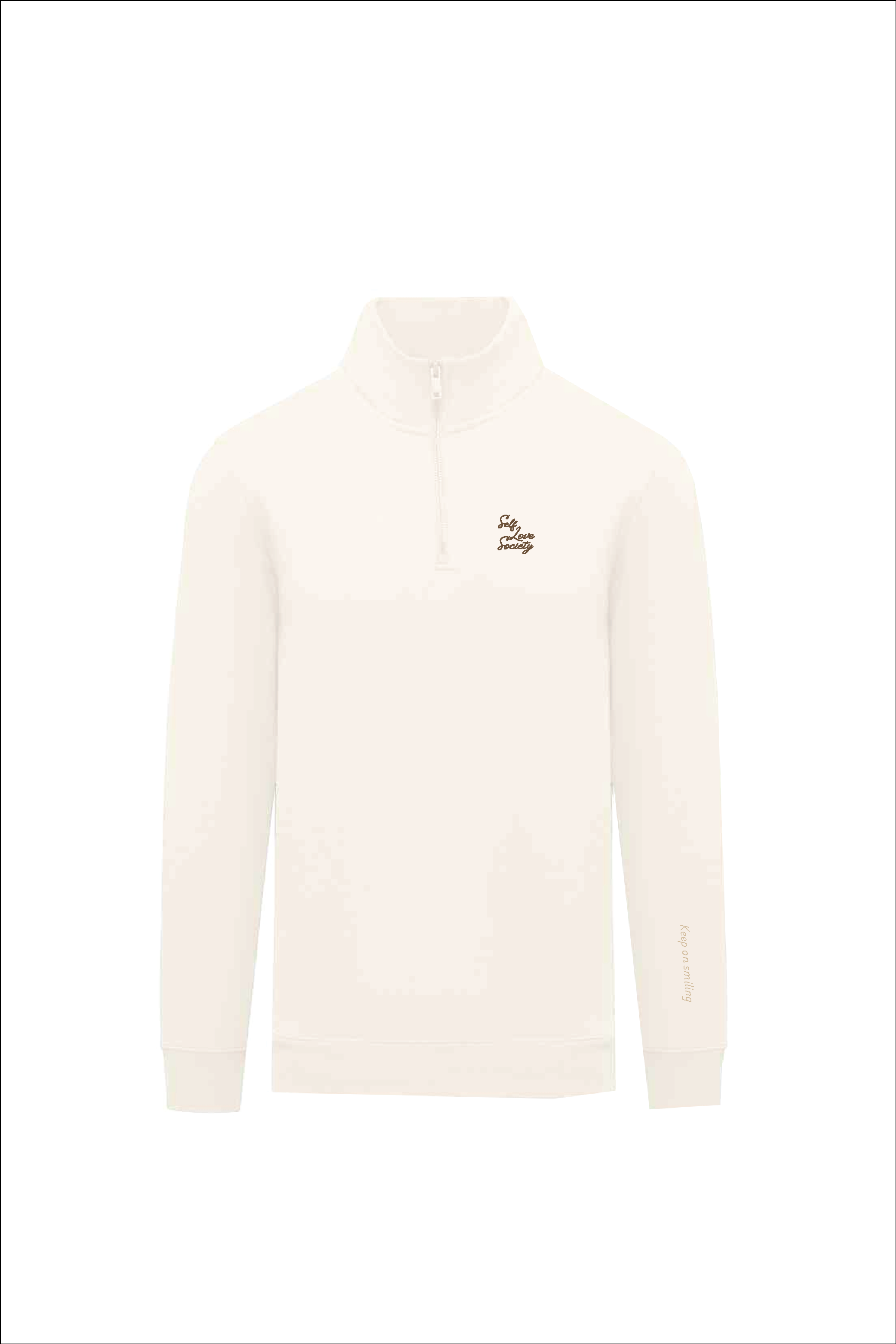 Stay cozy while looking effortlessly cute with our 3D Embroidered 3/4 Zip Sweater. The raised embroidery adds a sweet, textured detail that makes this everyday piece feel extra special with added extra arm message 'keep on smiling'. Perfect for soft, cozy outfits.