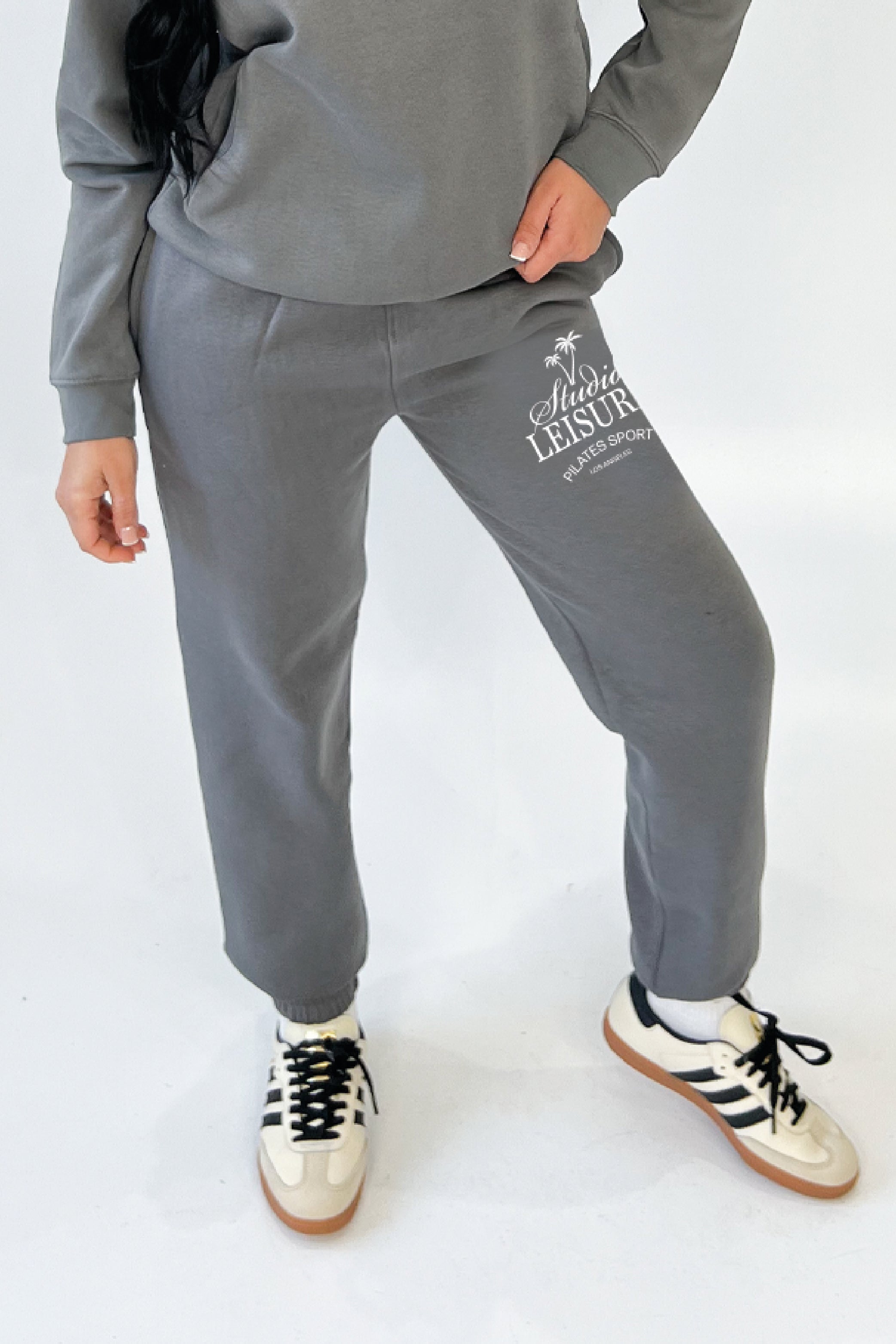Studio Leisure palm tree steel grey embroidered relaxed jogger