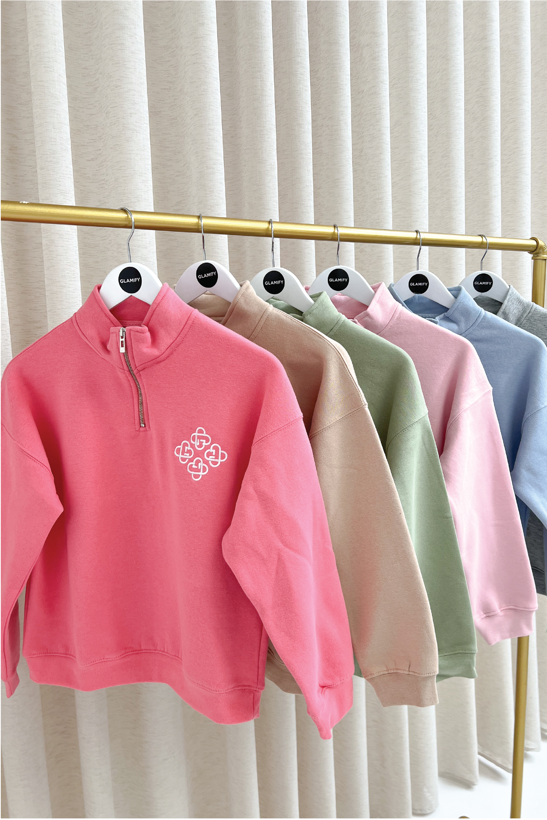 Mini G crest baby pink embroidered 3/4 zip sweater