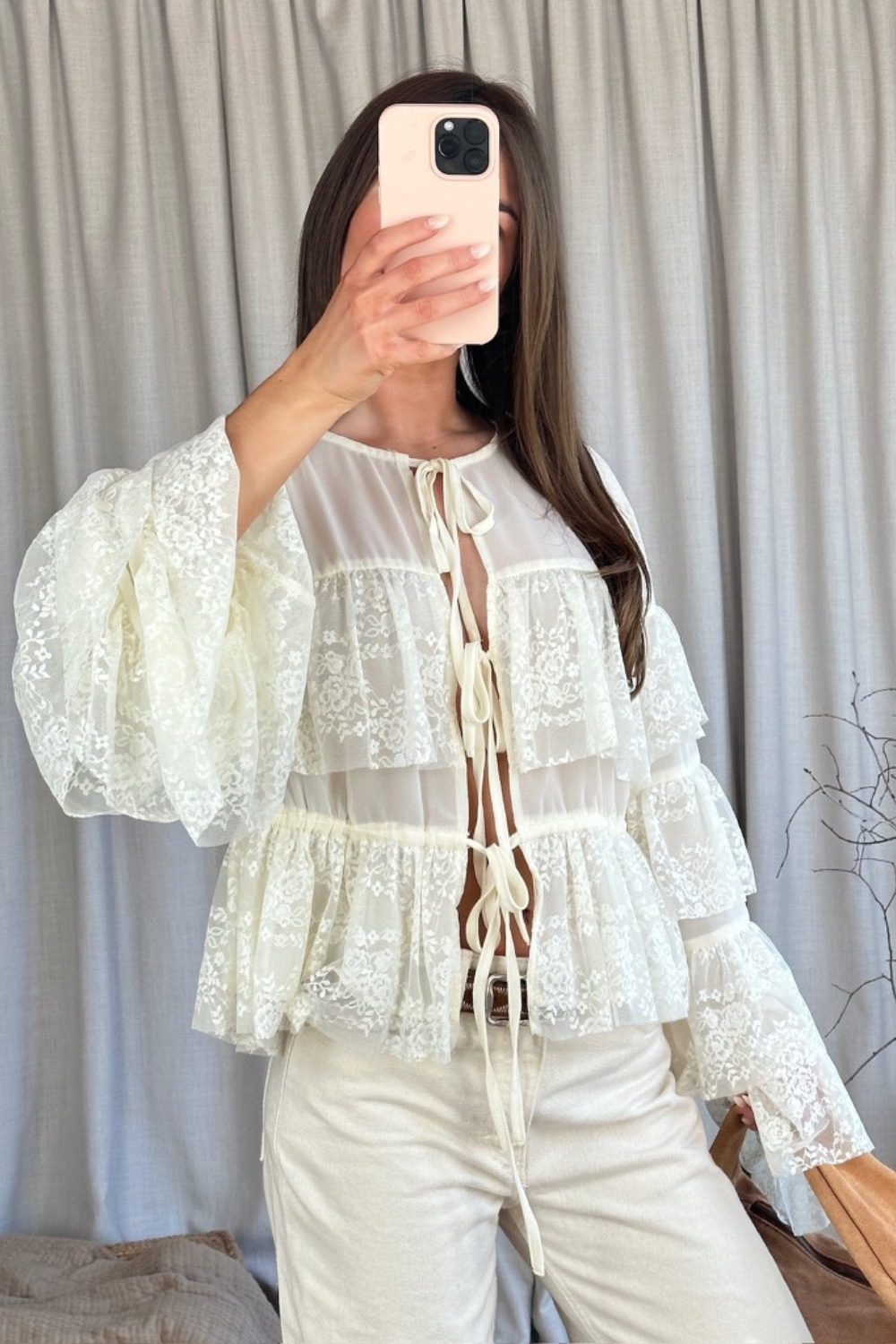 Unleash your inner wild child with our Miley lace top. This daring and playful piece features a unique tie front and sheer, lace layers that will make you stand out in any crowd. Perfect for adding a touch of fun to your wardrobe.