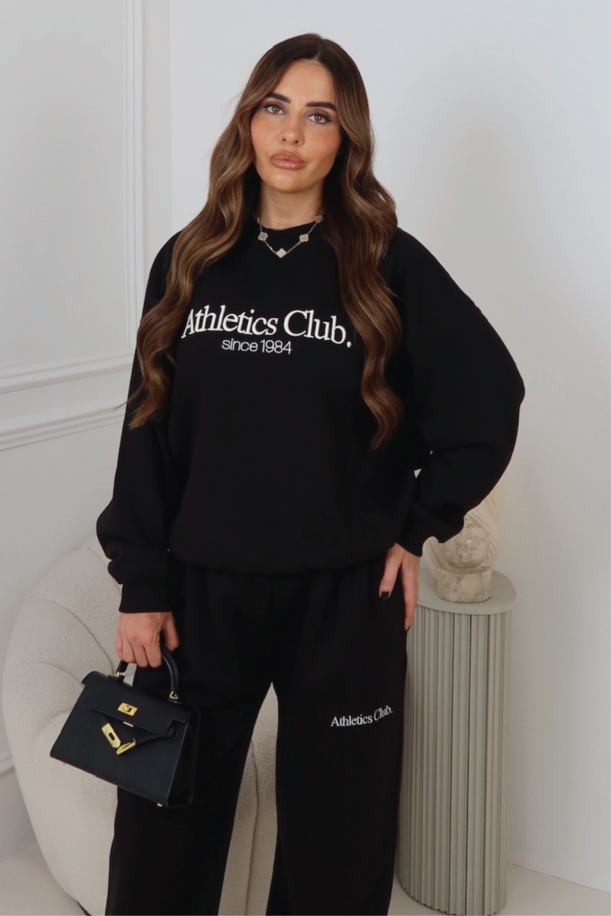 ATHLETICS CLUB BLACK EMBROIDERED SWEATER & STRAIGHT LEG TROUSERS LOUNGEWEAR