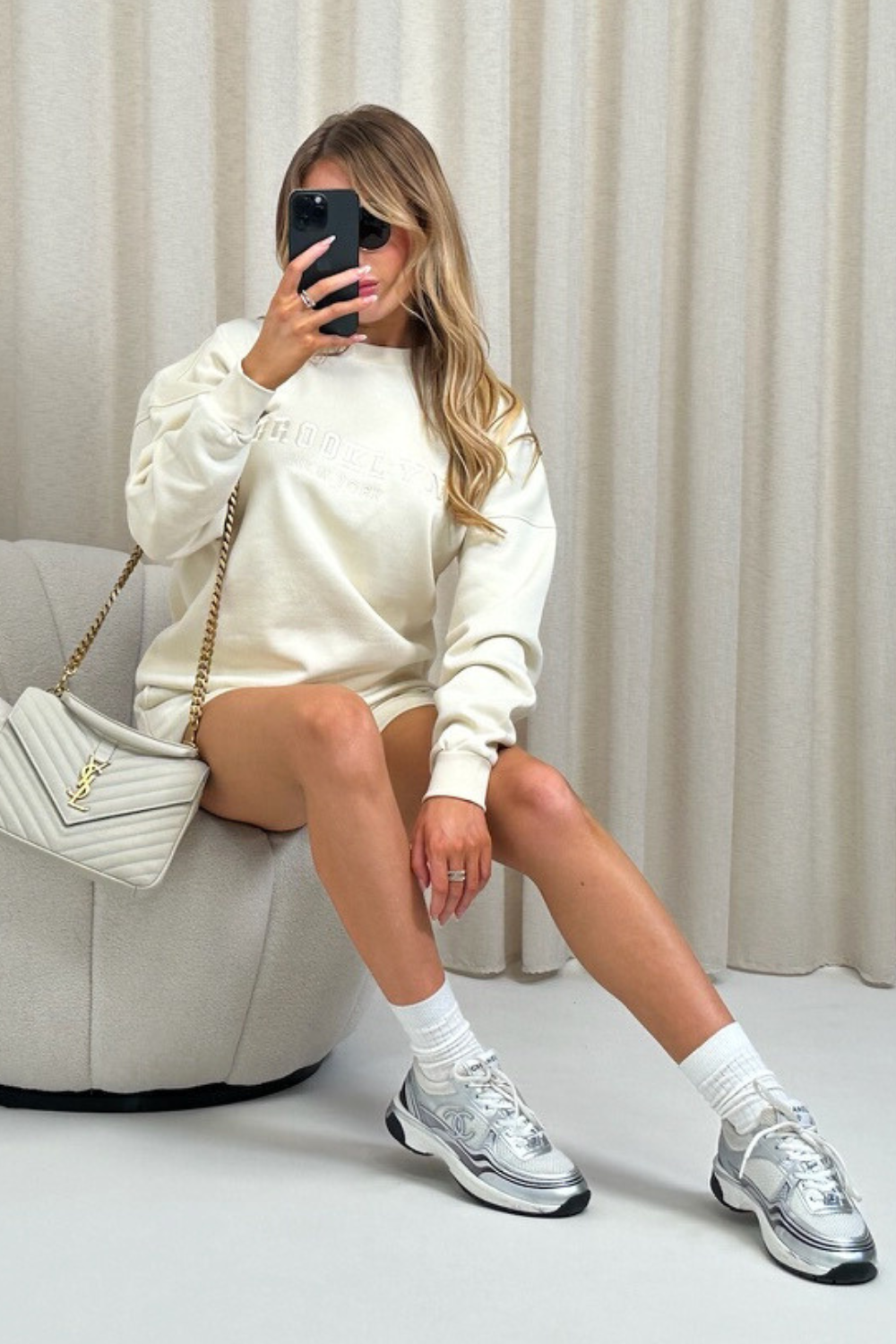Introducing our new sweater set consisting of a stunning sweater with a round neck , dropped shoulders and our in house design on the chest. This also comes with a matching pair of drawstring shorts. Style with fresh trainers for a complete look.