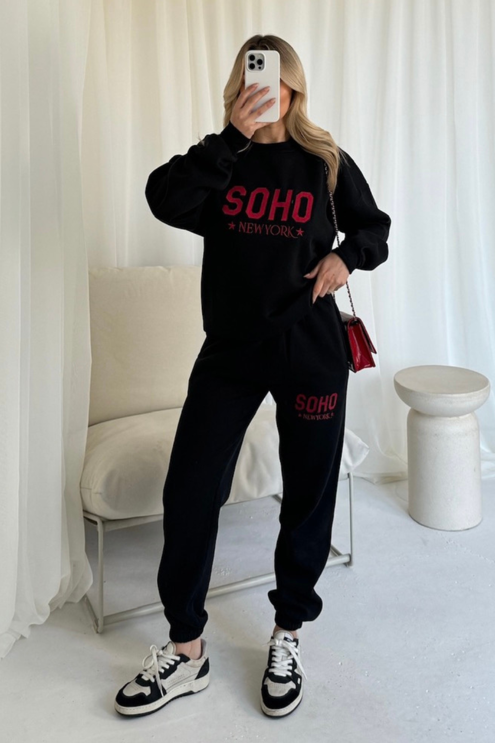 Introducing our new sweater set 'Calabasas' , the set consists of a stunning sweater that has a round neck and dropped shoulders with our in house design applique on the chest. This also comes with a matching pair of drawstring joggers. Style with fresh trainers for a complete look.