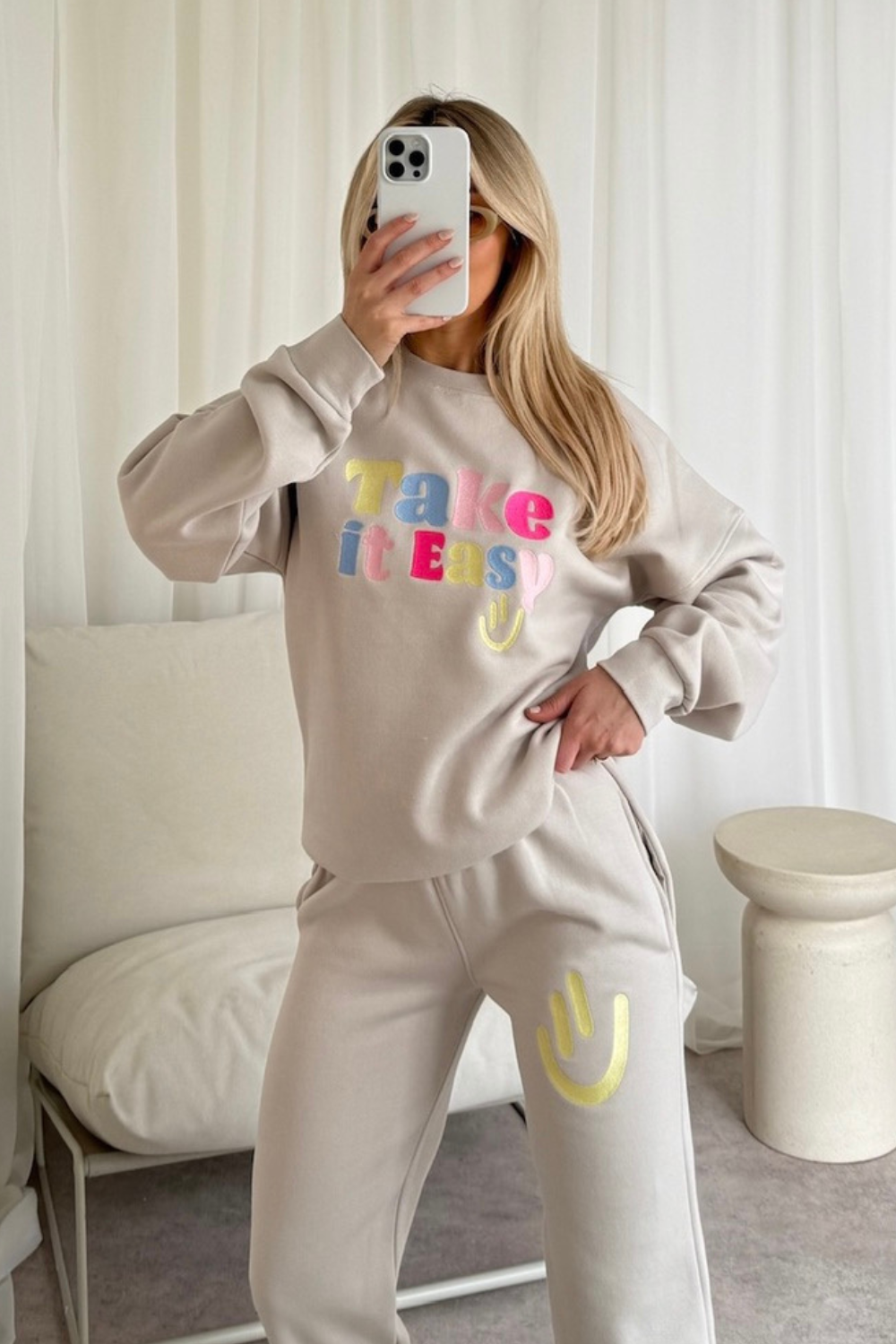Introducing our new hoodie set 'Take it easy' , the set consists of a stunning hoodie that has concealed pockets and dropped shoulders with our in house print design on the chest. This also comes with a matching pair of drawstring joggers. Style with fresh trainers for a complete look.