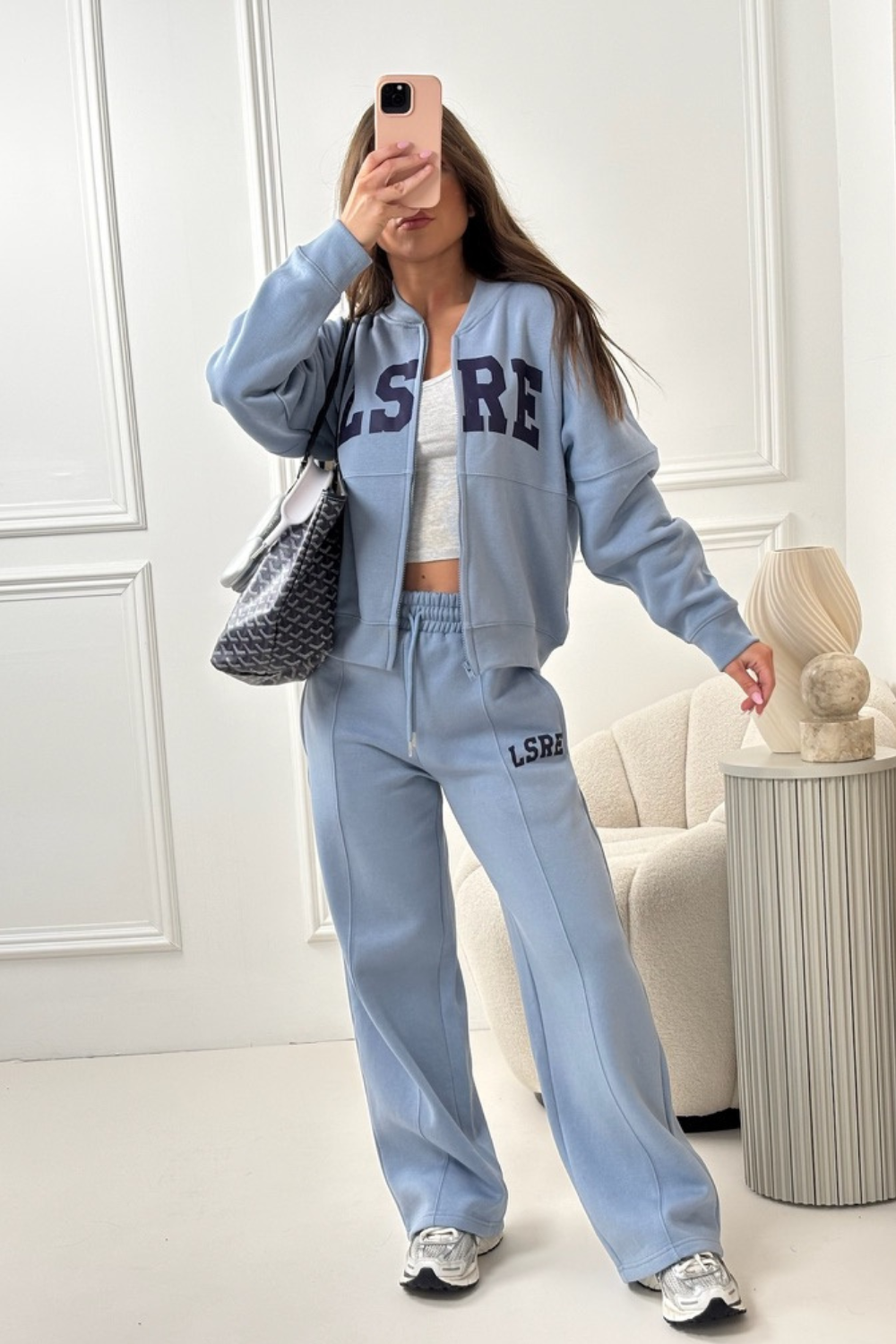 Stay stylish while lounging in this essential bomber jacket and straight leg jogger set. Featuring a gorgeous bomber jacket, constructed from light and soft fabric for a comfortable fit, and straight leg joggers with a drawstring waistband, this loungewear set is perfect for those looking for a chic, yet comfortable, look.