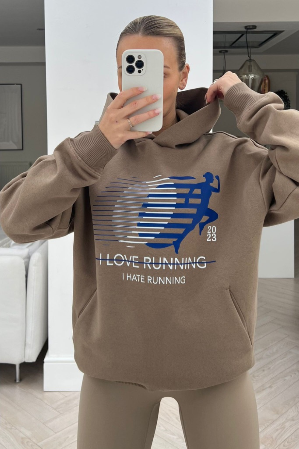 We all need a go to hoodie and our newest arrival is exactly that !, our ' i hate running ' hoodie is made from a soft premium stone material which is fleece lined and has long sleeves and a hood,. The hoodie features stunning print and hidden pockets, Style this with leggings or cycling shorts and fresh trainers for a complete look.