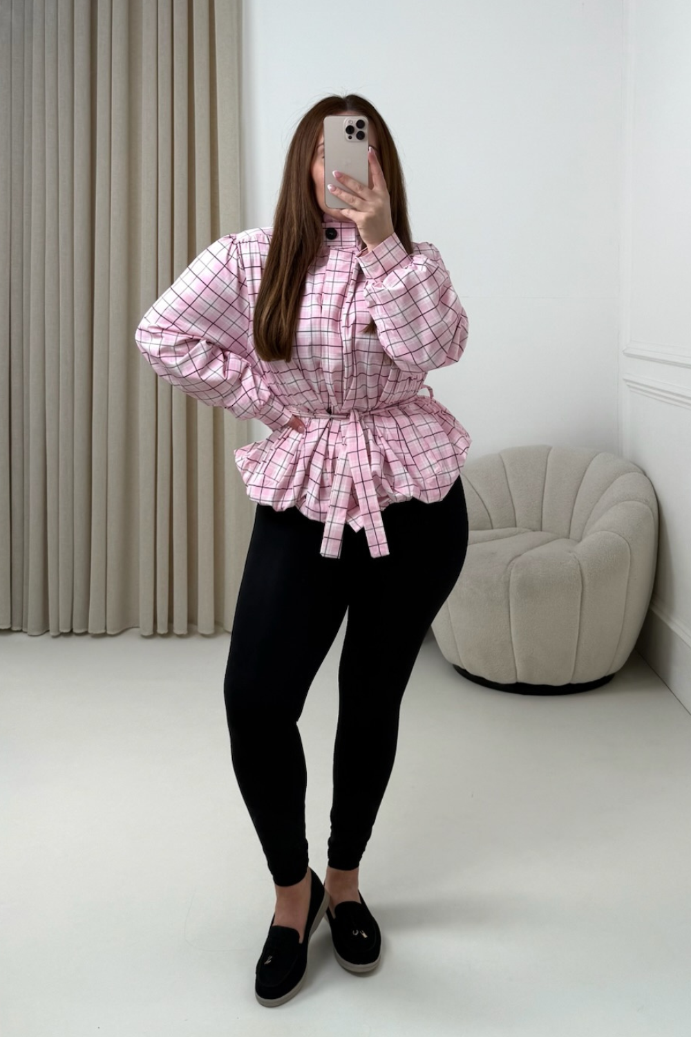 KODIE PINK CHECKED BELTED PUFF SLEEVE WINDBREAKER JACKET