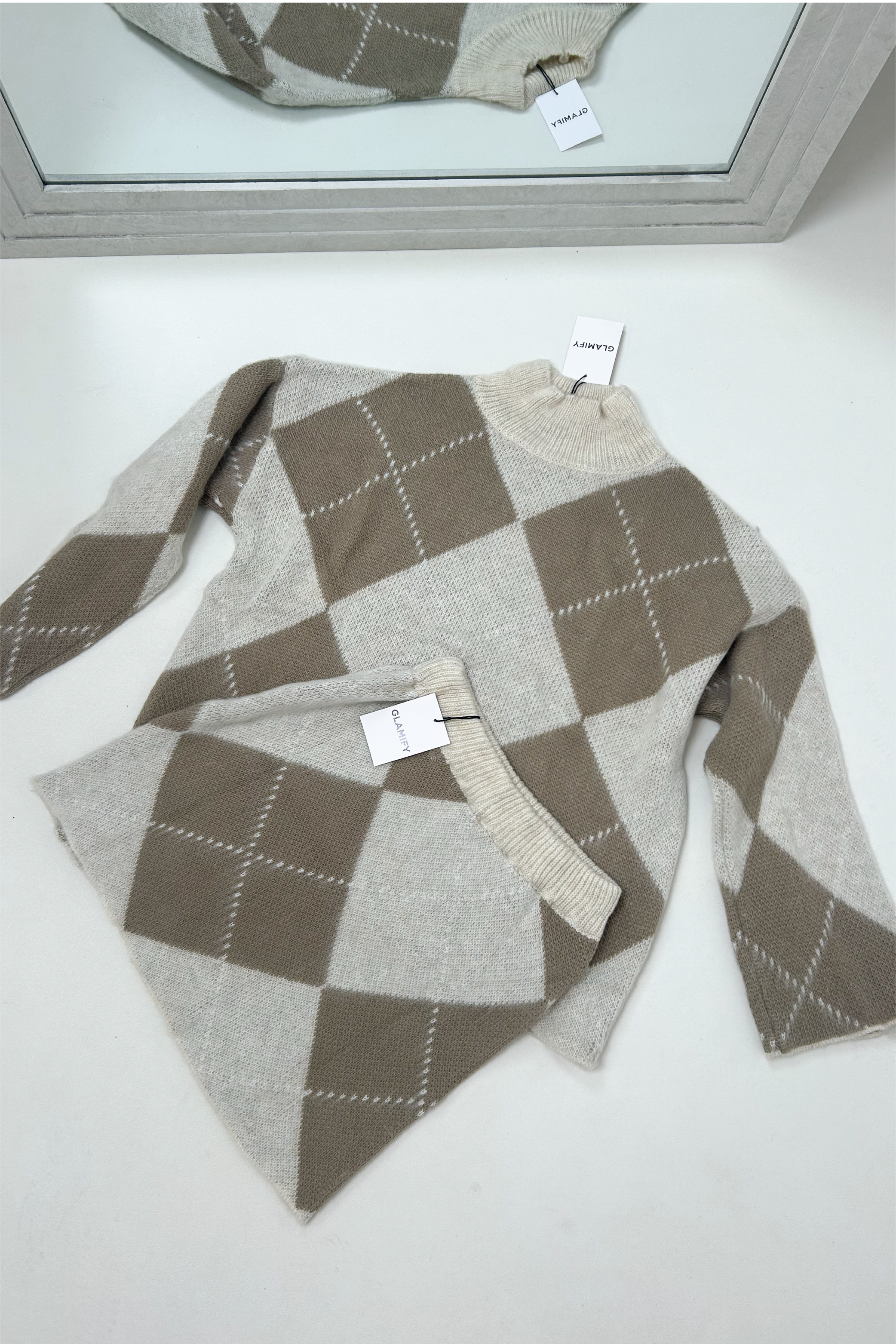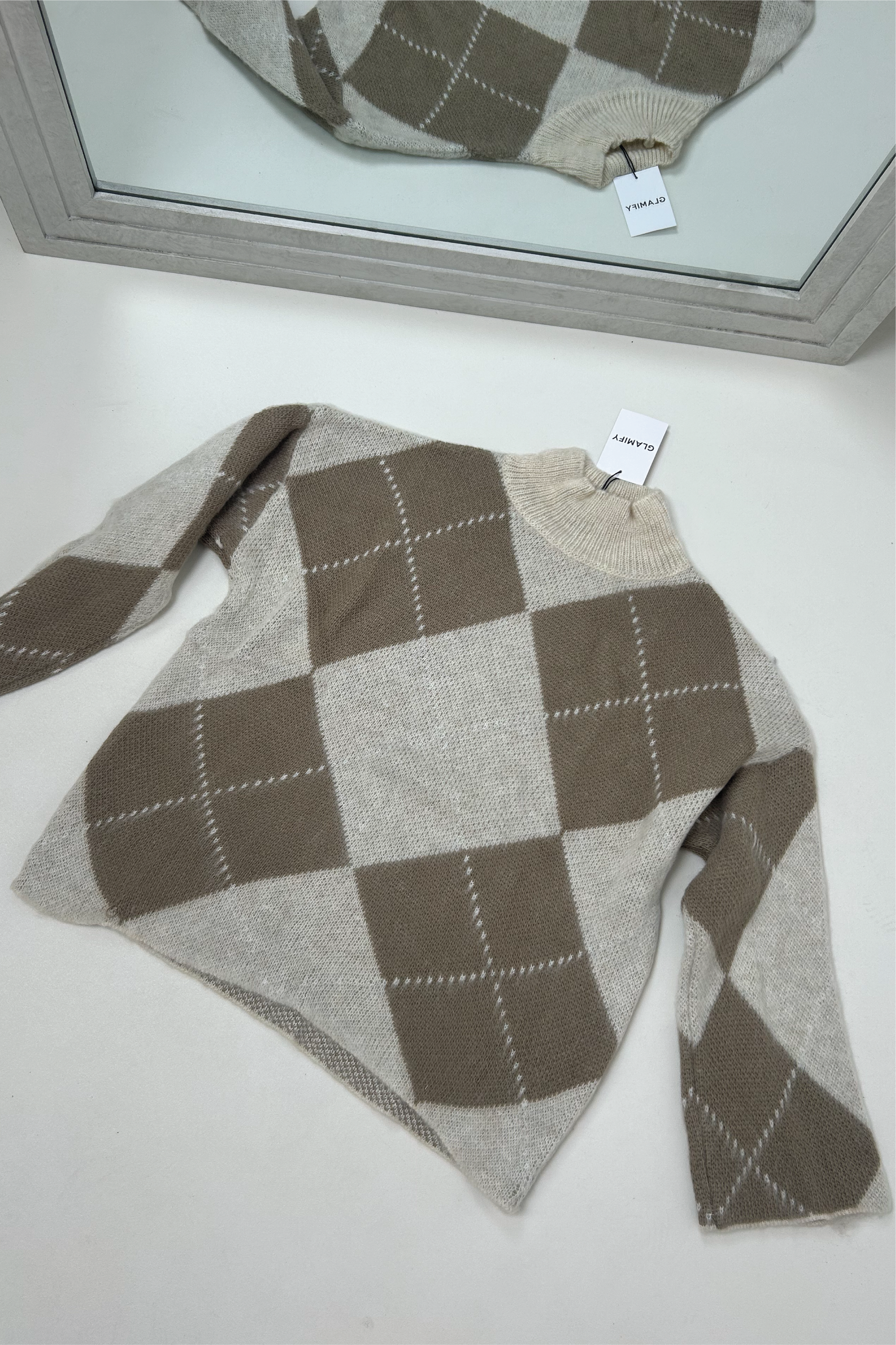 Wrap up in effortless style with our knitted high-neck checked jumper a cosy essential designed for both comfort and impact. Featuring a soft, textured knit and a bold check pattern, this timeless piece adds instant character to any outfit. Perfect for layering on cooler days, it pairs seamlessly with denim, tailored trousers, or your favourite winter coat for a polished, modern look.