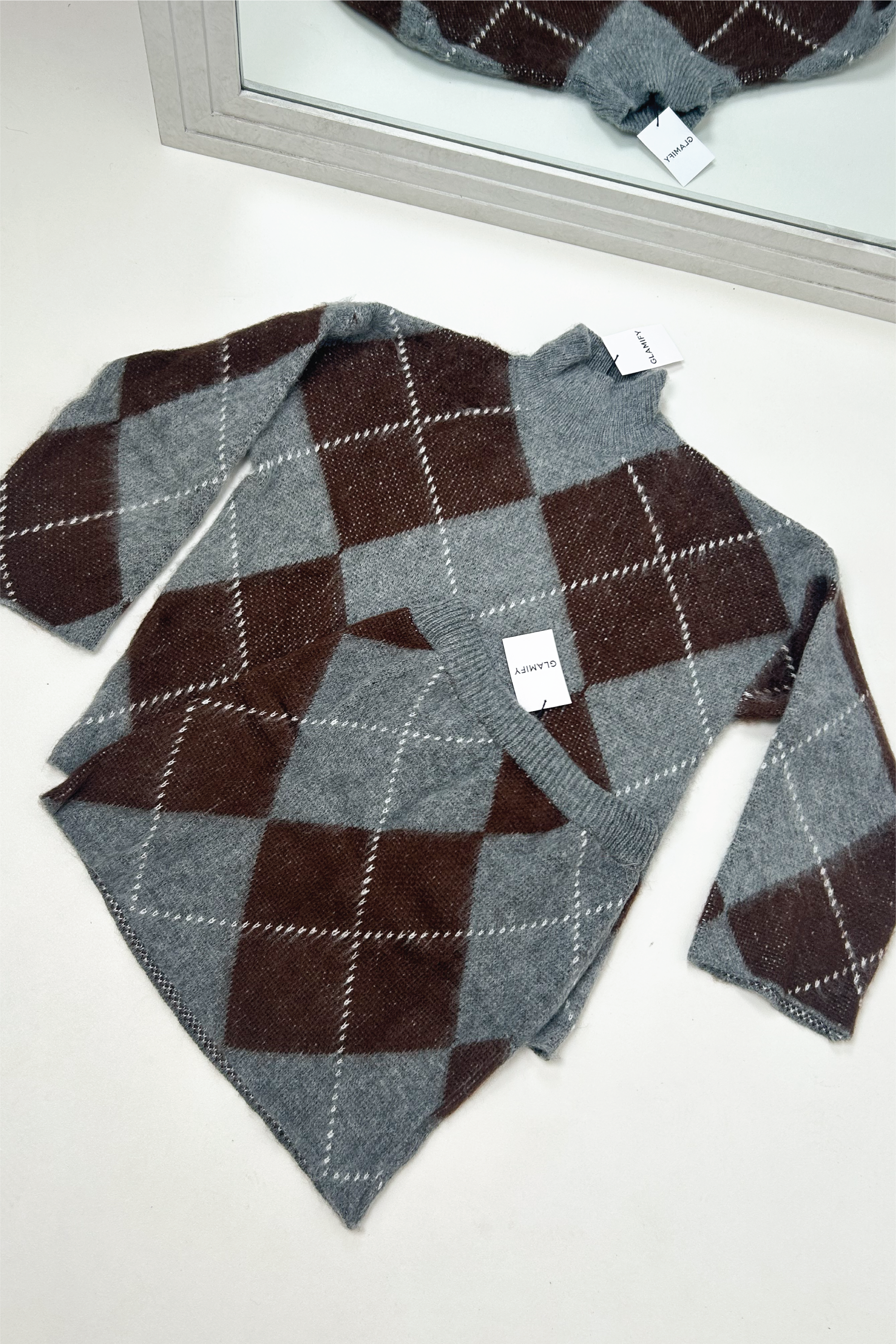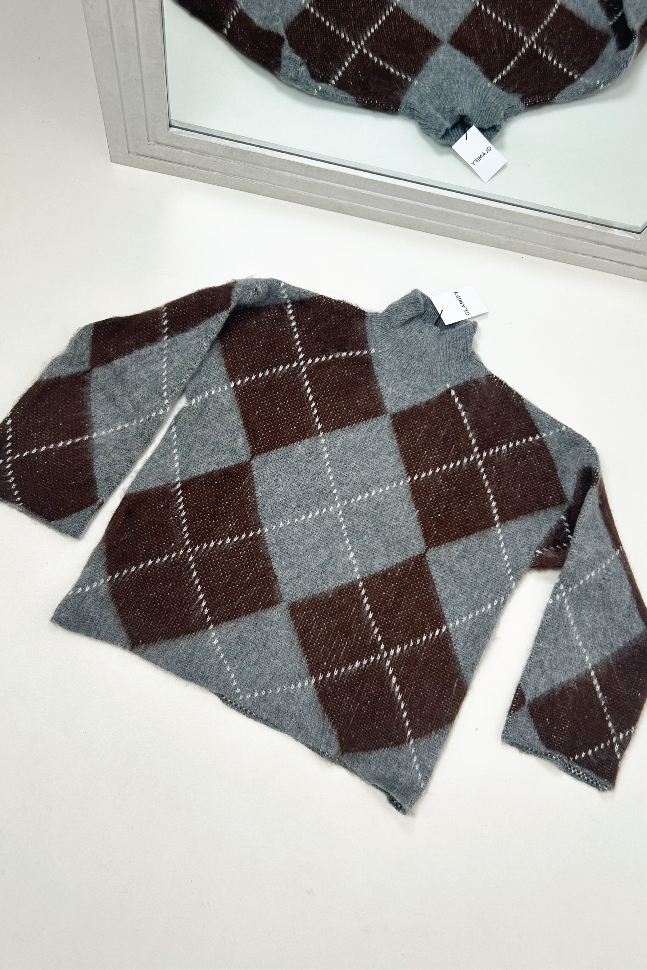 Wrap up in effortless style with our knitted high-neck checked jumper a cosy essential designed for both comfort and impact. Featuring a soft, textured knit and a bold check pattern, this timeless piece adds instant character to any outfit. Perfect for layering on cooler days, it pairs seamlessly with denim, tailored trousers, or your favourite winter coat for a polished, modern look.