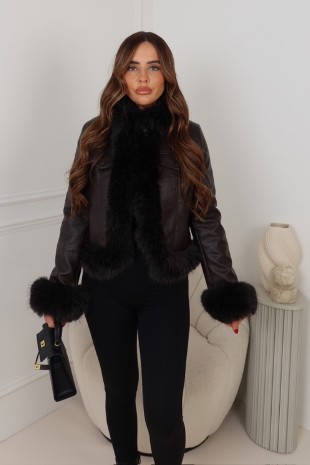 Bring the edge and the elegance with our faux leather jacket, finished with luxe faux fur cuffs and a statement collar. This glam-meets grunge piece adds instant attitude to any look, while keeping things cosy and chic. A wardrobe staple with a fierce twist
