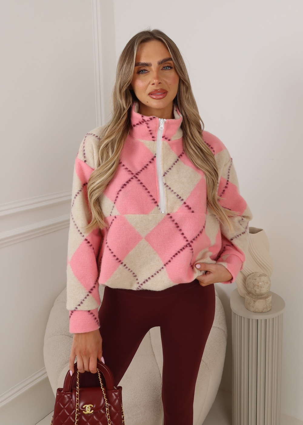 LUCY PINK ARGYLE 3/4 ZIP JUMPER