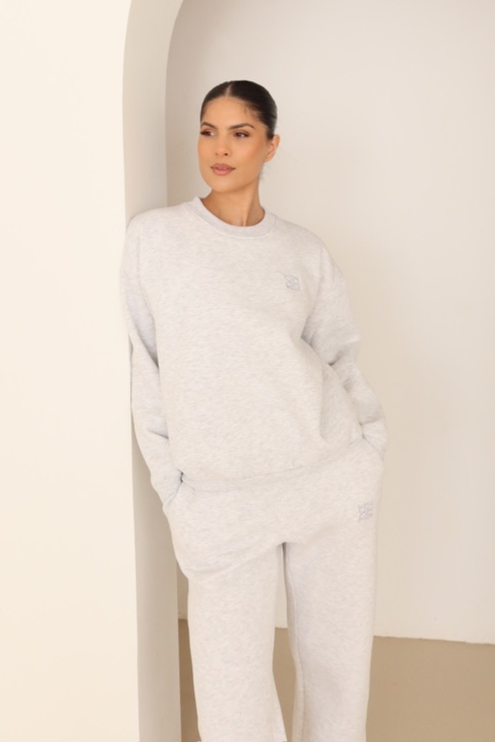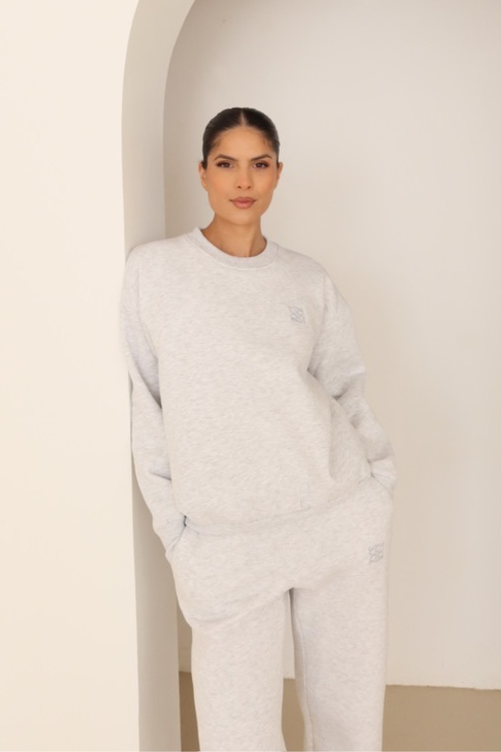 This Marl embroidered logo sweater features a cozy fleece lining and a beautifully embroidered logo, making it the perfect addition to your fall and winter wardrobe.