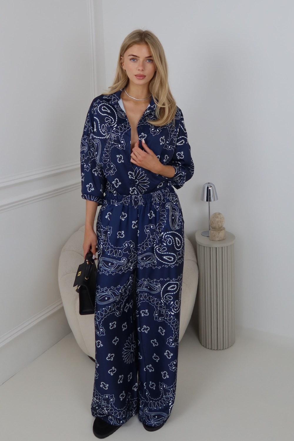 Satin shirt featuring a beautiful paisley pattern for a stylish, eye-catching look. Made from smooth, silky fabric with a relaxed fit, it adds a touch of elegance while still feeling effortlessly chic. Perfect for dressing up with tailored trousers or keeping it casual with jeans.