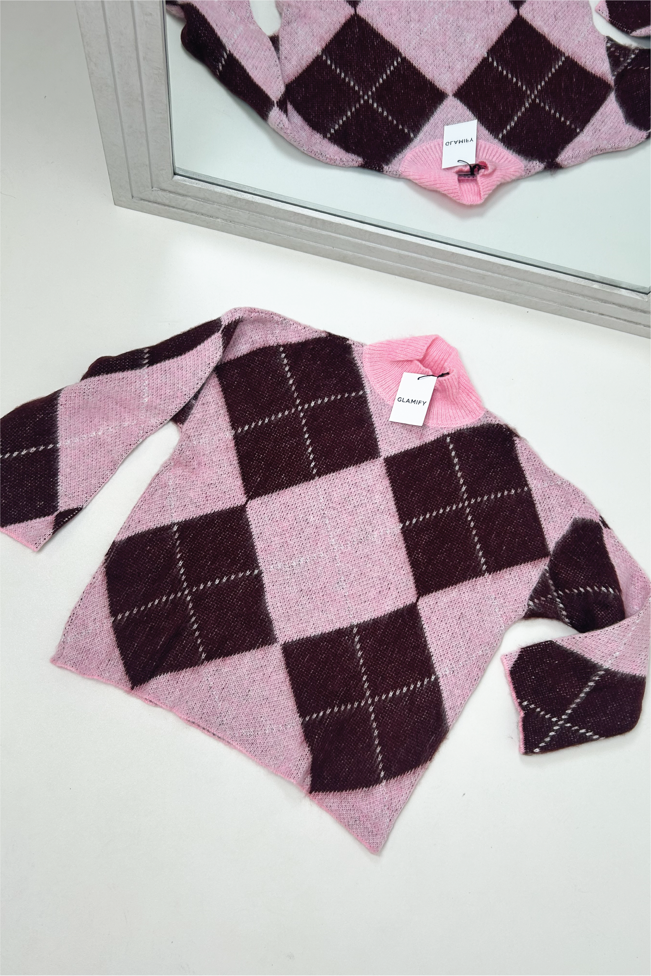 Wrap up in effortless style with our knitted high-neck checked jumper a cosy essential designed for both comfort and impact. Featuring a soft, textured knit and a bold check pattern, this timeless piece adds instant character to any outfit. Perfect for layering on cooler days, it pairs seamlessly with denim, tailored trousers, or your favourite winter coat for a polished, modern look.