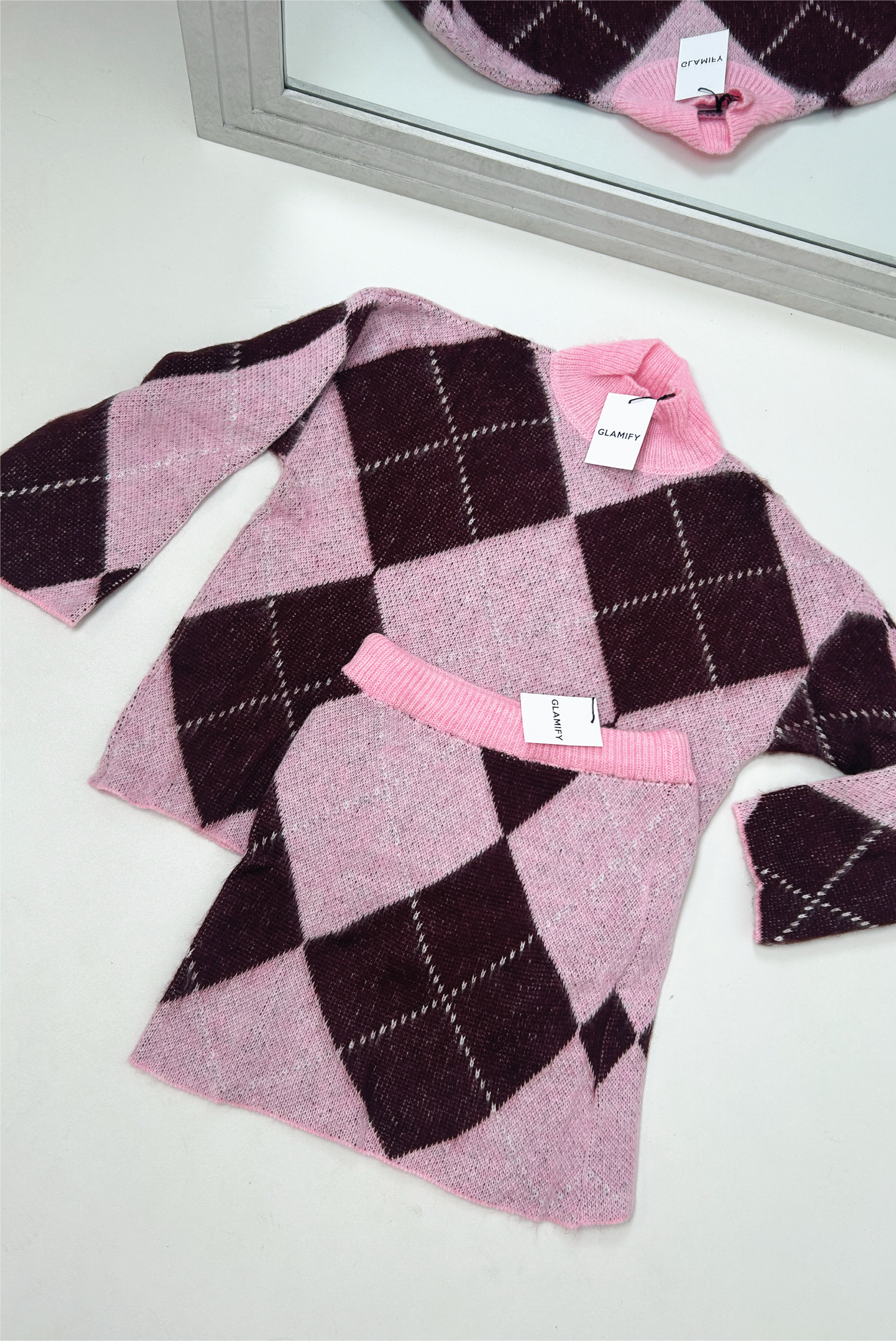 MITZI PINK WINE CHECKED KNITTED SKIRT