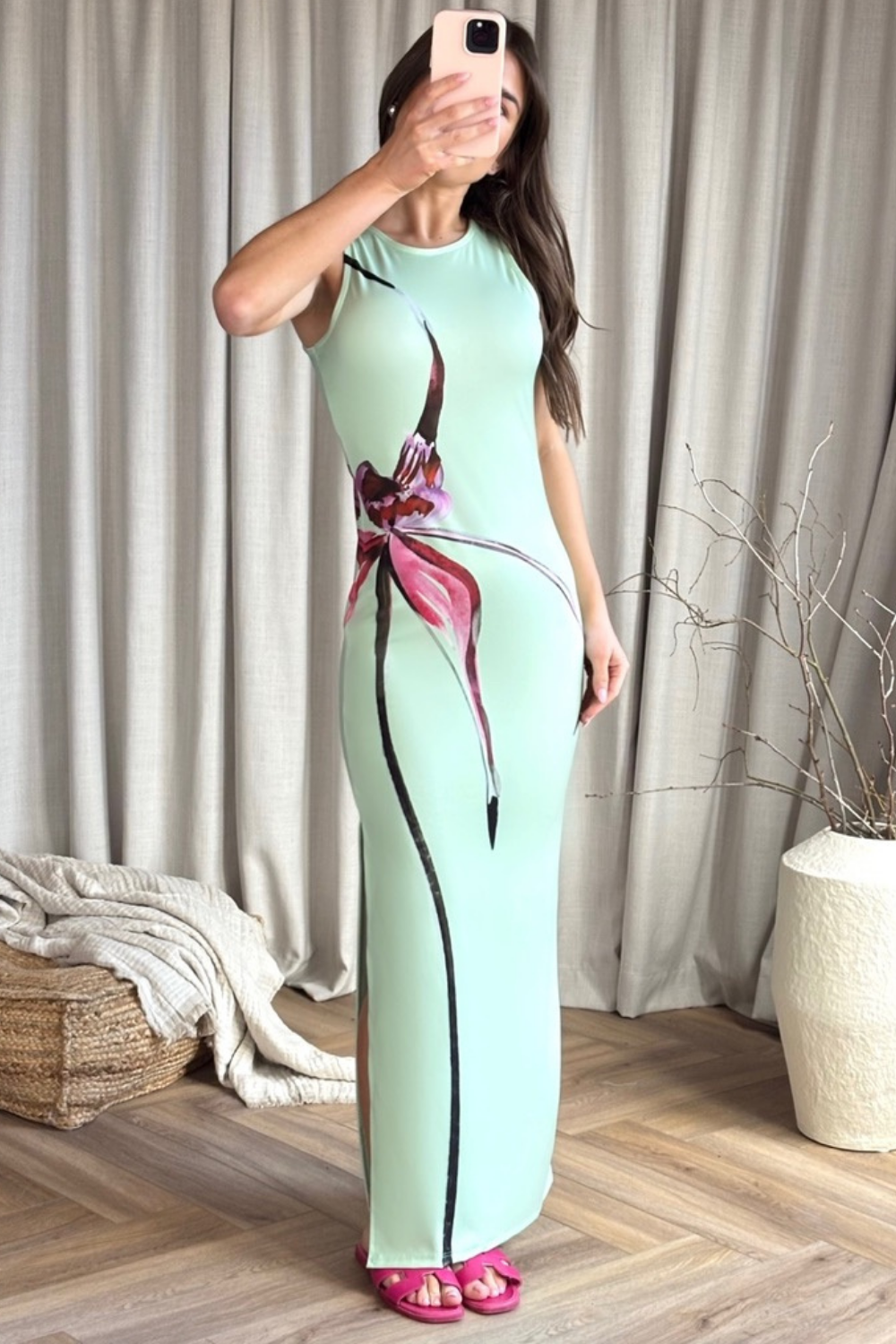 Effortlessly stylish and versatile, our Miley floral printed fitted maxi dress features a stunning floral print and figure-hugging stretch for a flattering fit. With a trendy split in the leg and sleeveless design, dress it up or down for any occasion. Trust us, you'll want to wear this dress everywhere.