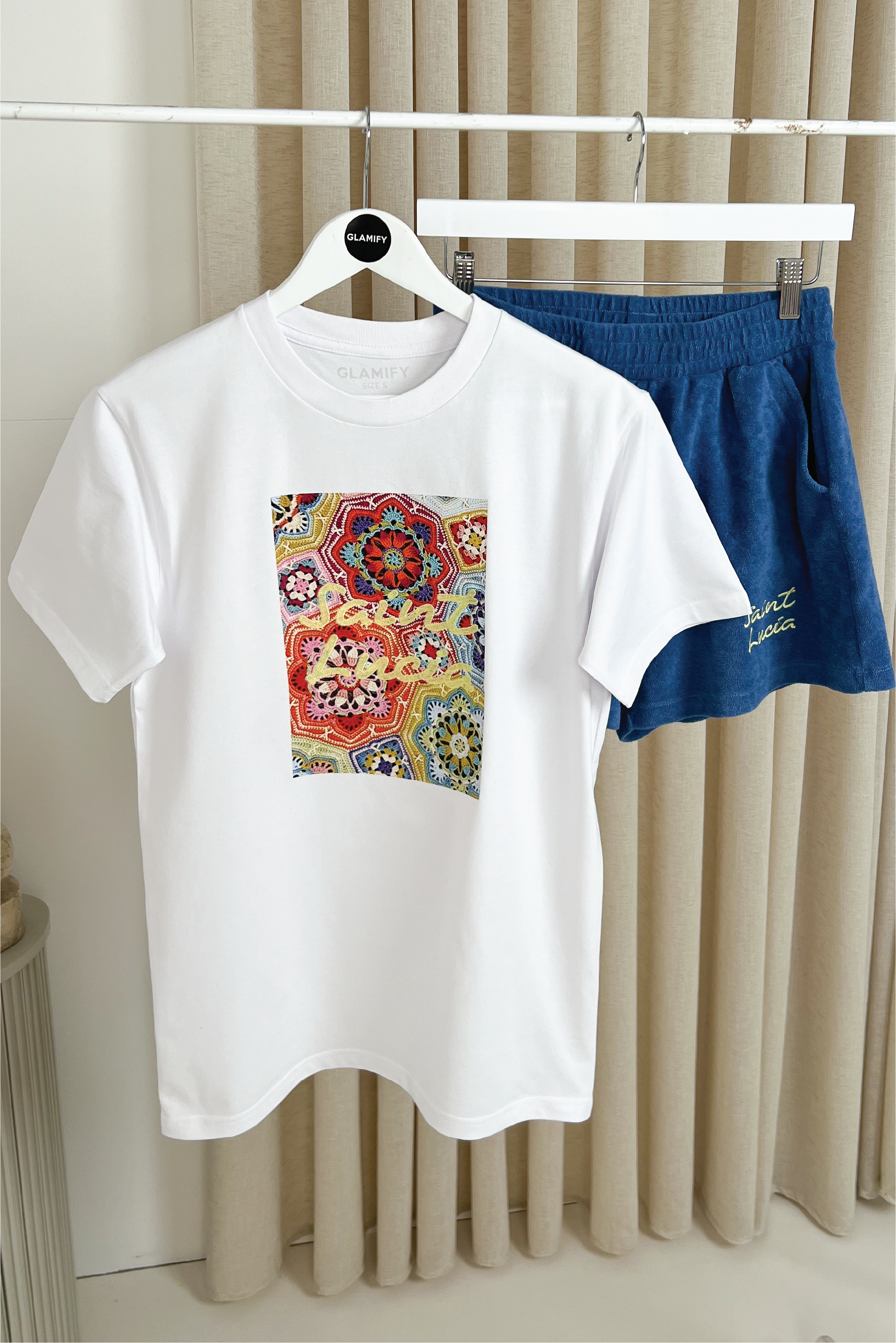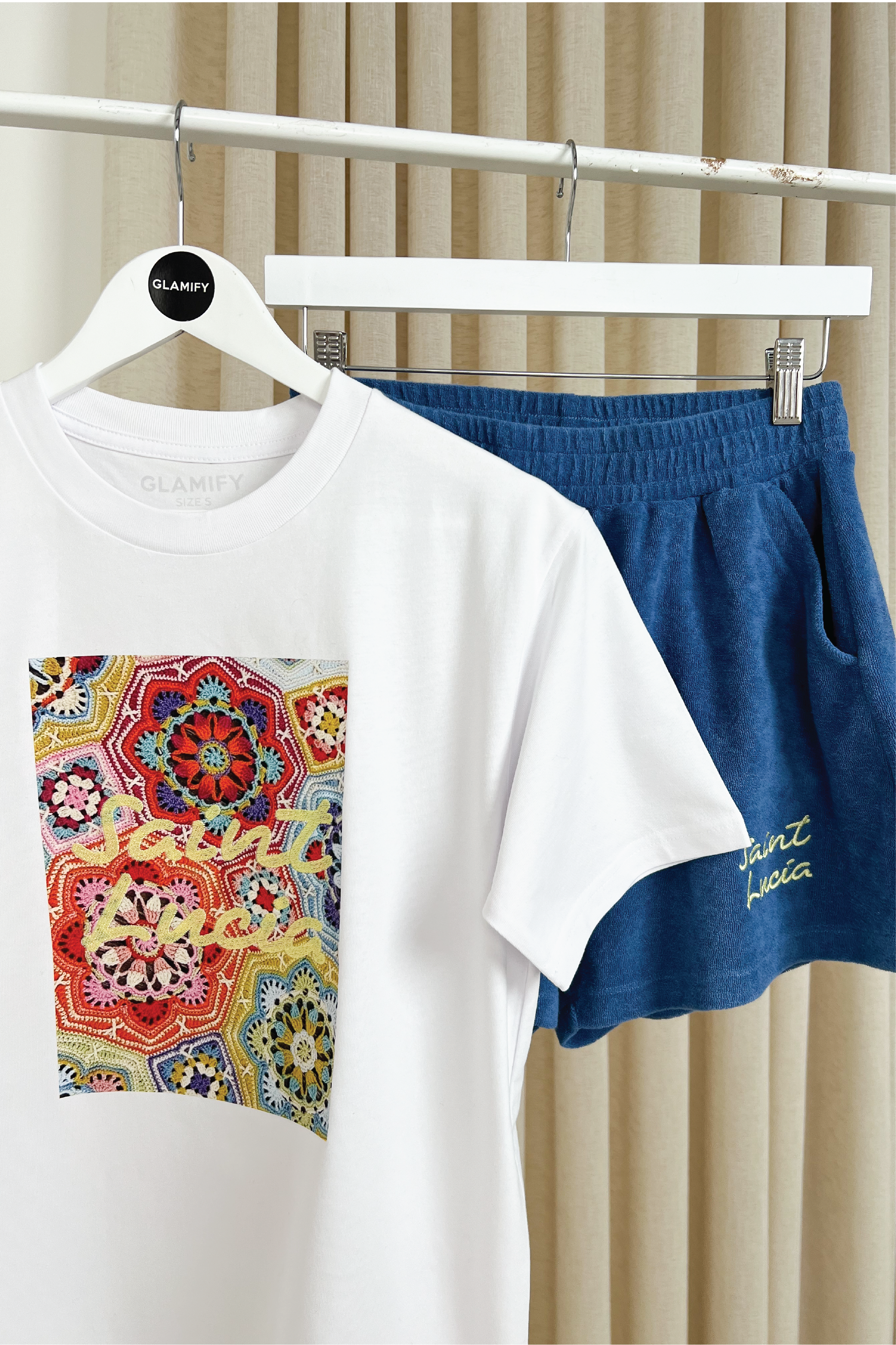 Saint lucia blue embroidered t-shirt towelling shorts set