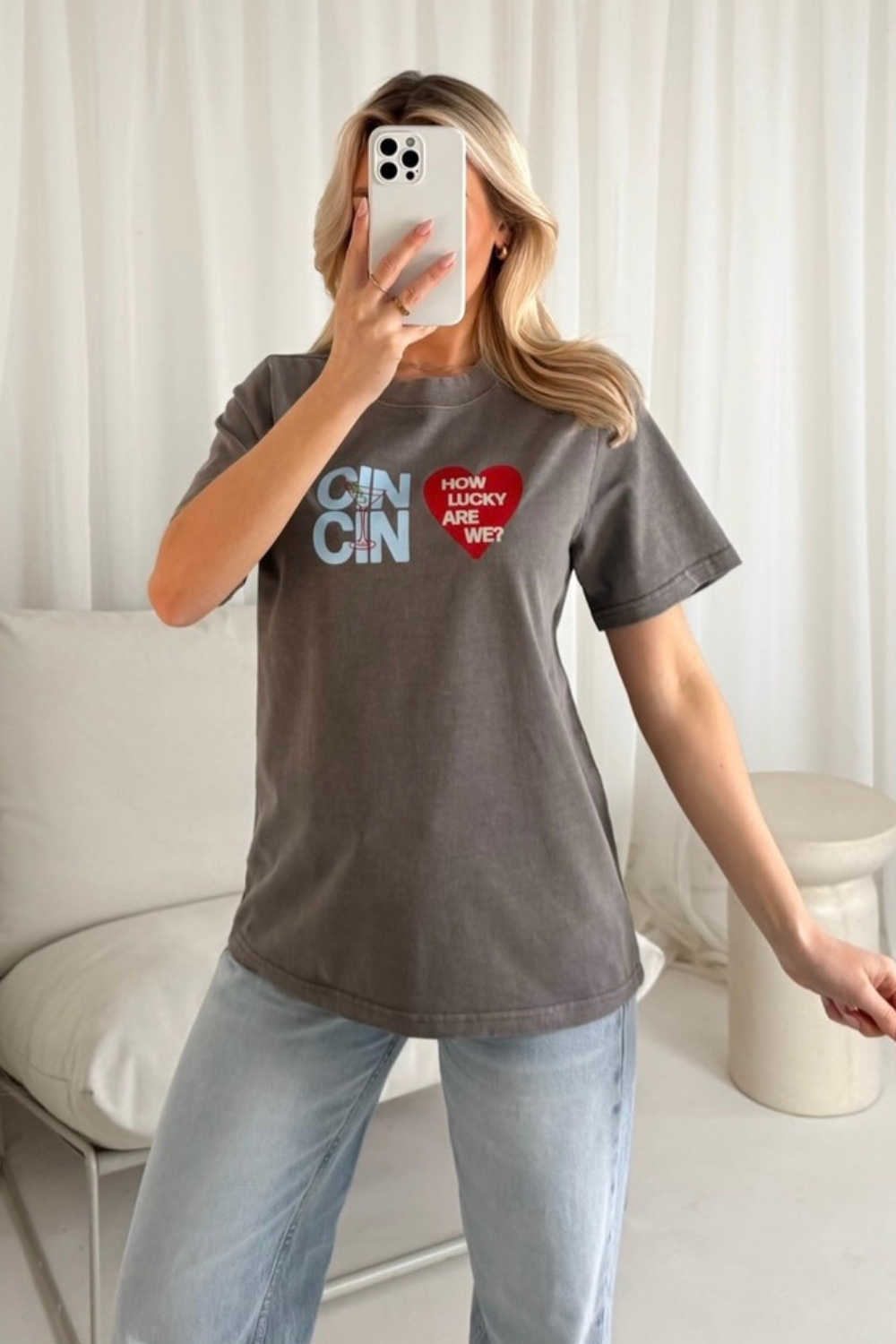 Cin Cin faded grey printed heavyweight oversized t-shirt