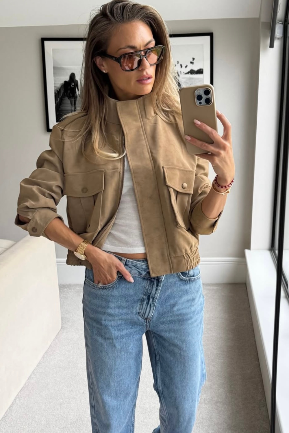 Jamie beige faux suede jacket