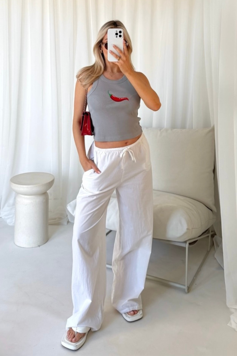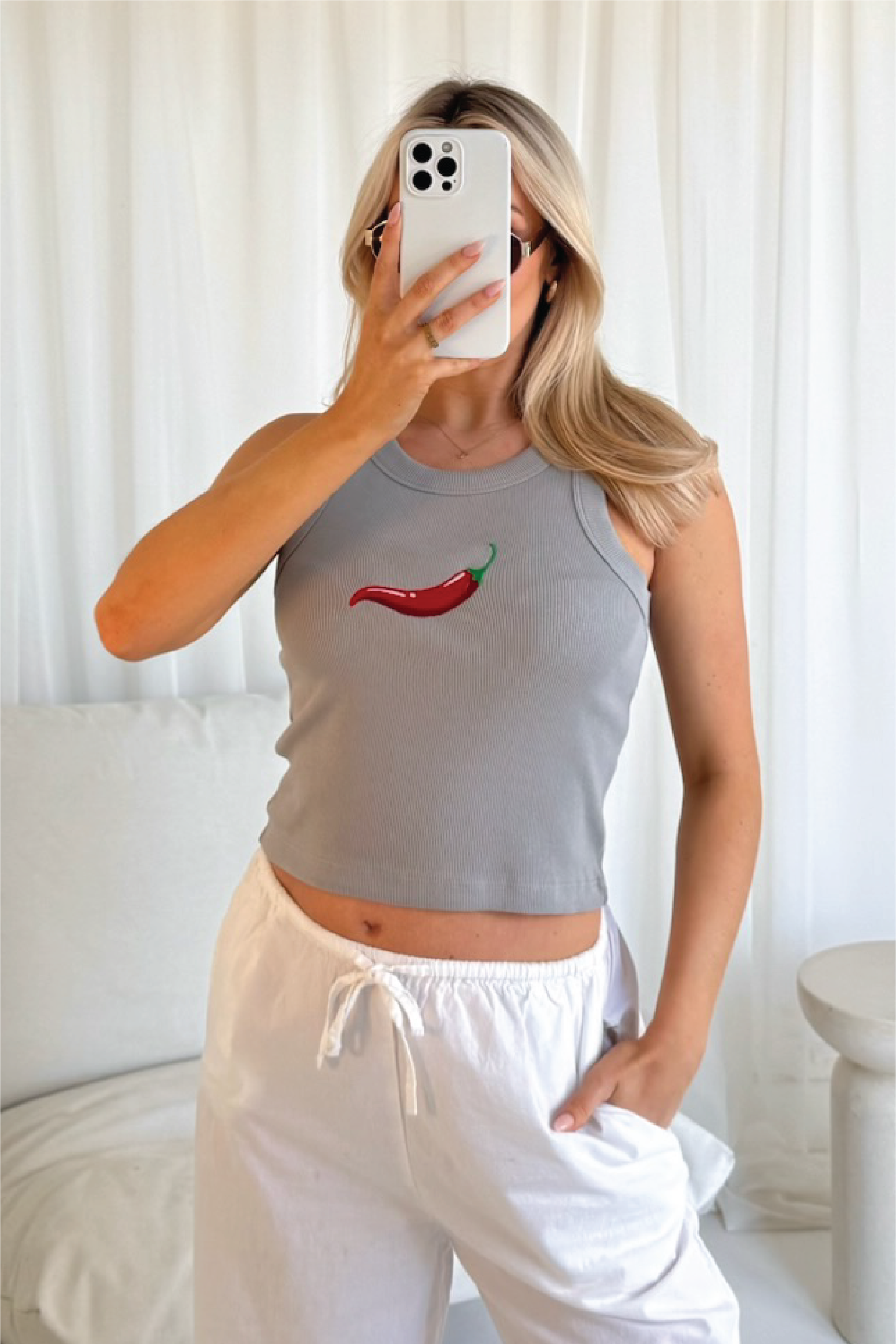 Chilli grey embroidered ribbed vest
