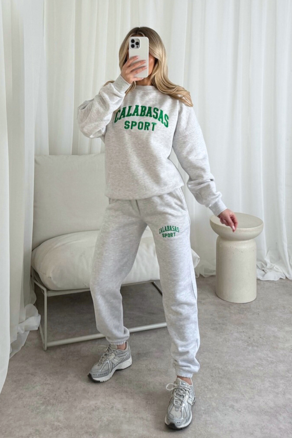 Introducing our new sweater set 'Calabasas' , the set consists of a stunning sweater that has a round neck and dropped shoulders with our in house design applique on the chest. This also comes with a matching pair of drawstring joggers. Style with fresh trainers for a complete look.