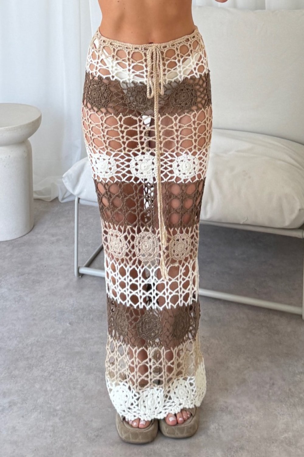 Get ready to rock summer style with our Coral brown & beige long crochet skirt! This holiday essential is perfect for the beach babe in you, with its intricate crochet design.