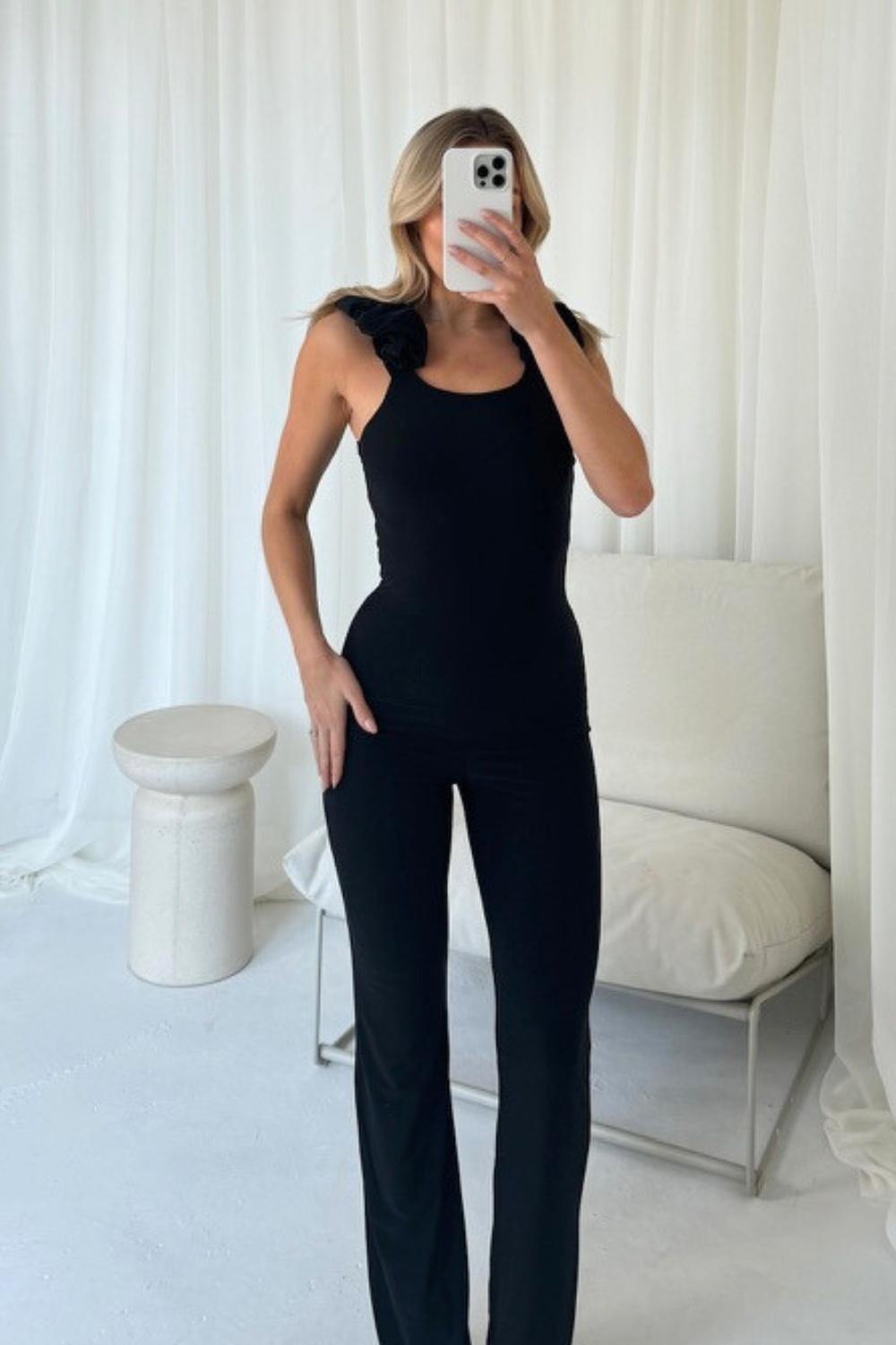 Esme loungewear is the perfect combination of comfort and sophistication. The stretchy, soft fabric for maximum comfort. The flared pants give a stylish touch to the look while providing flexibility. The vest top completes the ensemble for a sleek, lounge-ready look.