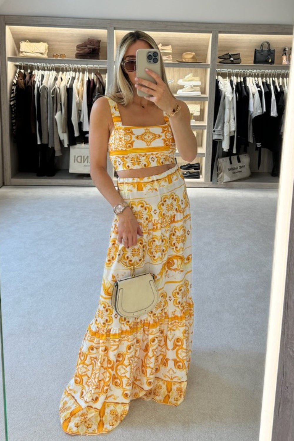 Get ready to turn heads in our Gabbi floral co-ord set. The chic floral print on this crop top and maxi skirt combo is perfect for your next holiday. Classy yet playful, this co-ord will elevate your style game effortlessly!