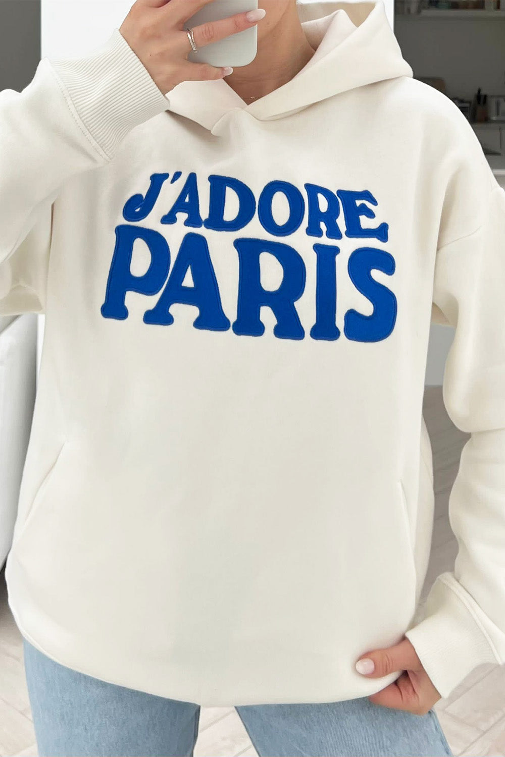 We all need a go to hoodie and our newest arrival is exactly that! our ' jadore paris ' embroidered hoodie is made from a soft white material which is fleece lined and has long sleeves and a hood. The hoodie features stunning embroidered design to the chest of the hoodie with two front hidden pockets. Style this with leggings or cycling shorts and fresh trainers for a complete look.